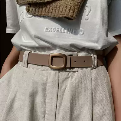 Brown leather wide belt Women summer decoration simple Joker pants belt women ins tide with suit jeans