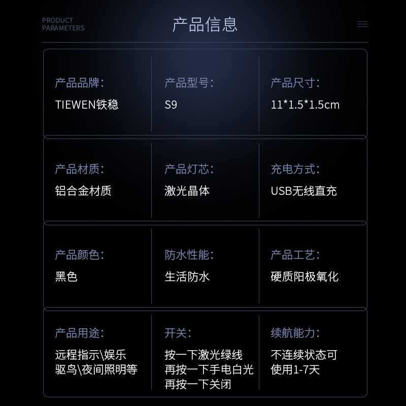 Iron-stable S9 laser pen holder white light green light two-in-one USB charging waterproof far-shooting sale of sand tray teaching whip pen