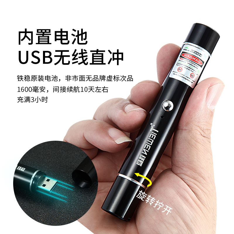 [USB charging green light] Laser white light function [USB charging red light] laser white light function