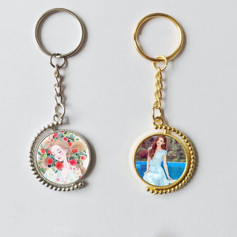 Heat transfer key button double-sided rotary key chain pendant print personality DIY blank metal lock button consumables
