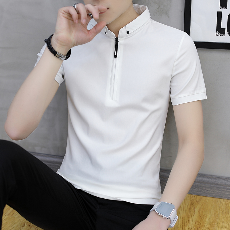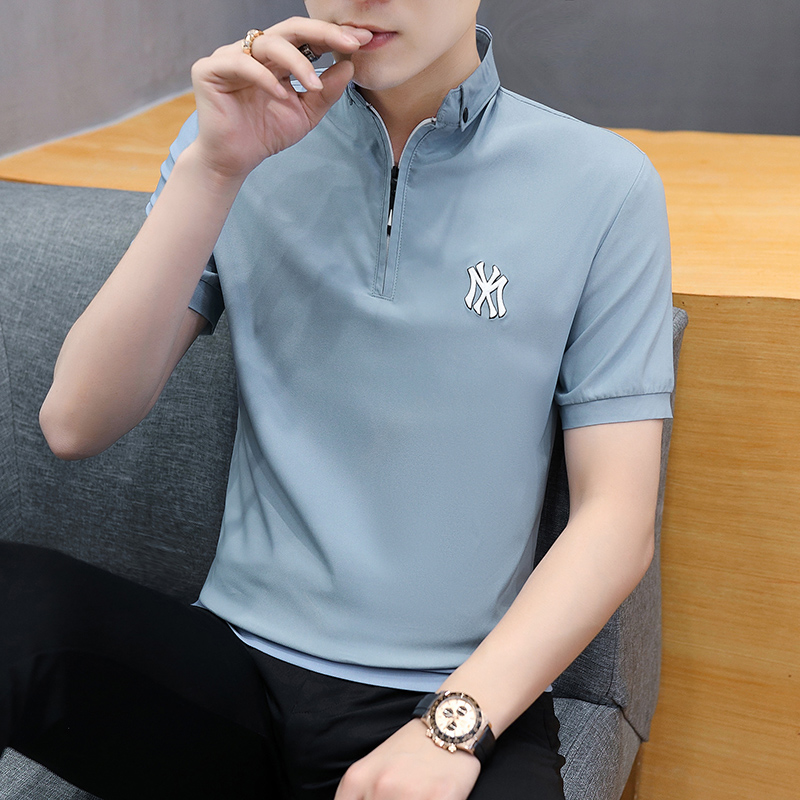 Men's short sleeve T-shirt collar summer thin ice silk men's 2021 new cotton trend casual polo shirt men