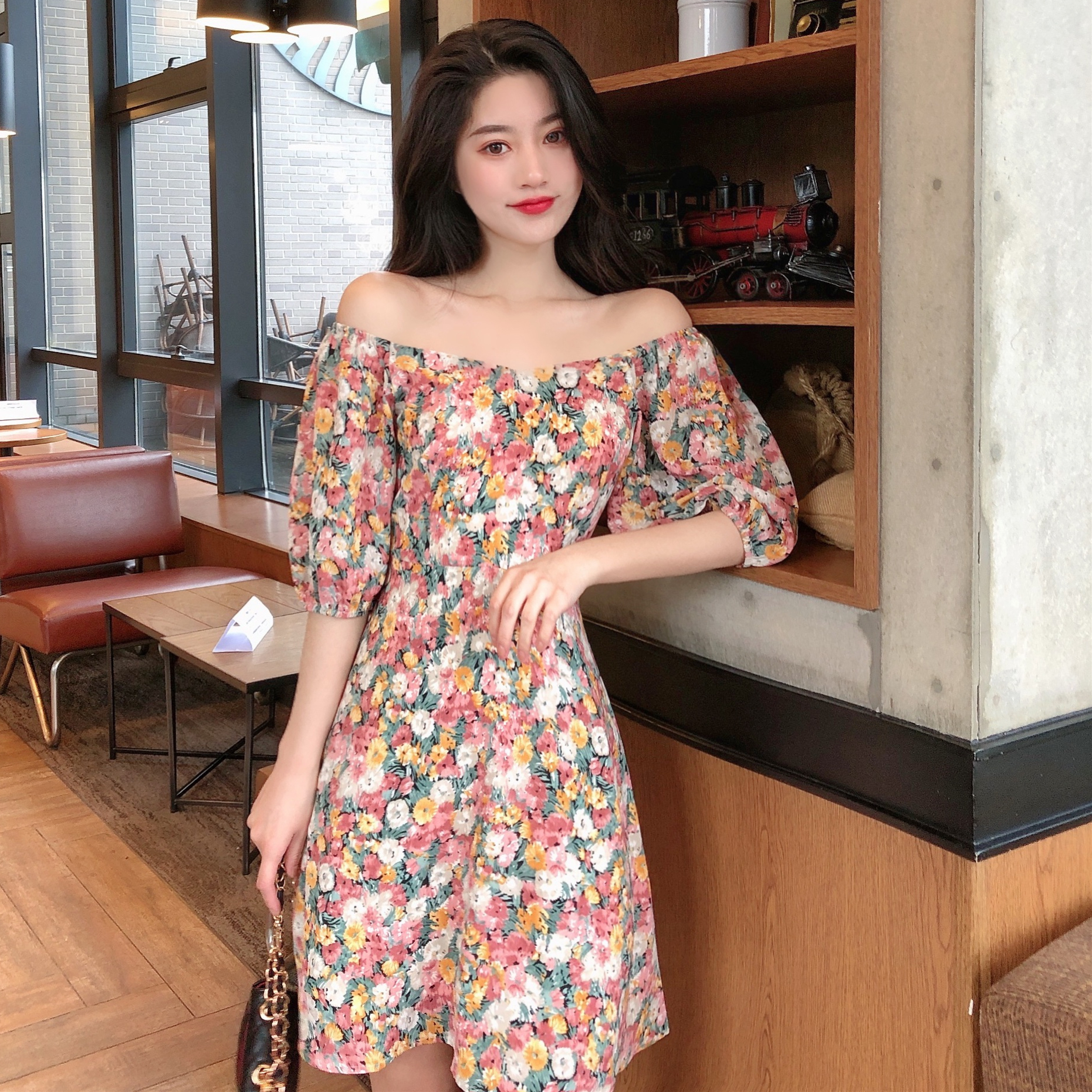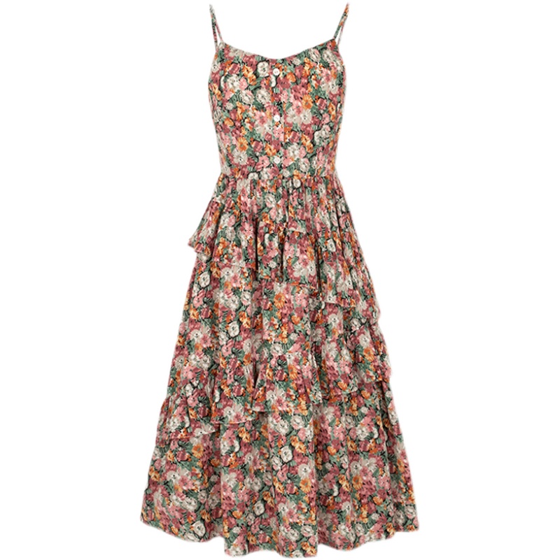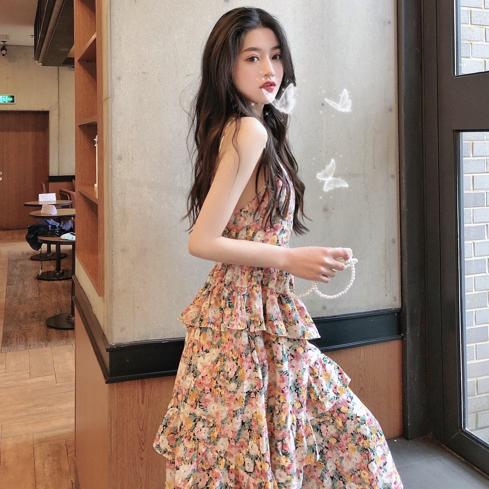 Gu Qiqi GUQIQI sunshine short-sleeved floral skirt women's summer 2021 new sweet and salty chiffon suspender skirt