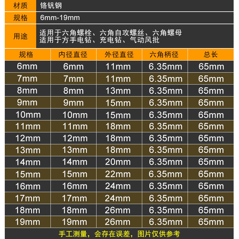 Sleeve batch head hexagonal shank pneumatically powered internal and external hexagonal wrench electric drill pneumatically hexagonal nut wrench