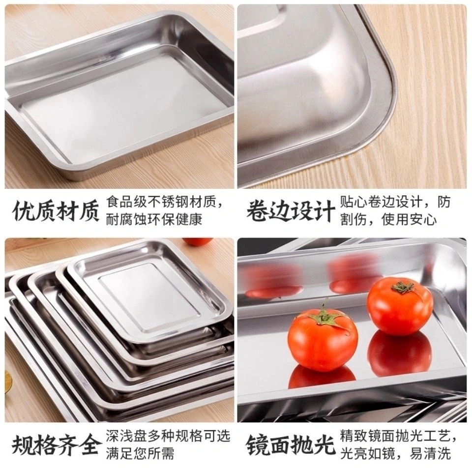 Stainless steel plate rectangular tray restaurant dish barbecue plate deep powder dumplings disc