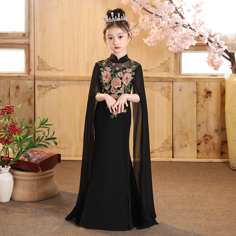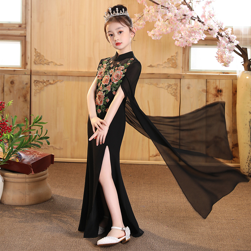 National Day Children's Performance Costume Black Fishtail Dress Chinese Style Dress Guzheng Costume Girls Cheongsam
