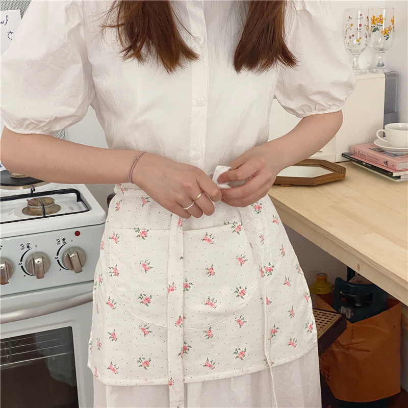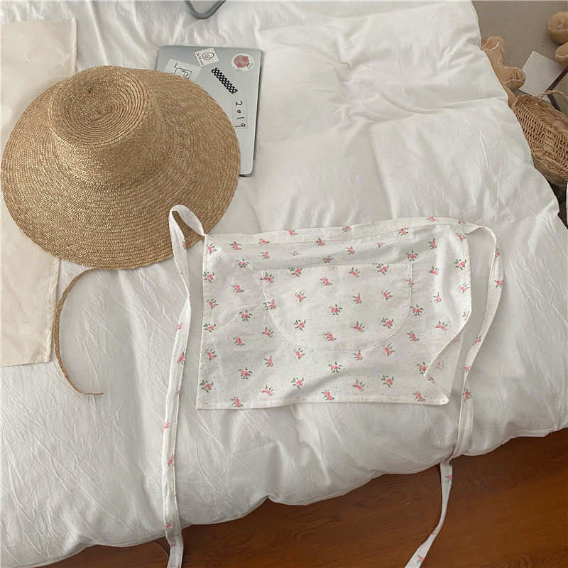 Po-homemade ins style French retro girl romantic floral apron elegant cotton kitchen picnic baking