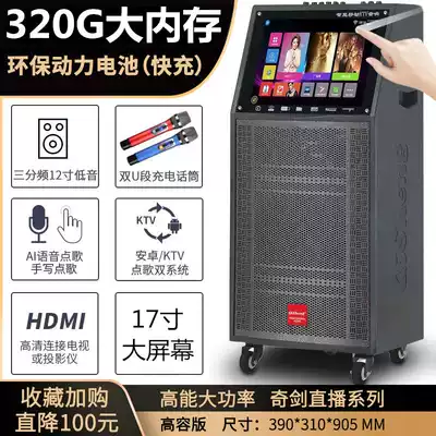 Qirong Square Dance Audio with Display Screen Outdoor Mobile Rod Audio High Power Bluetooth Speaker with Wireless Microphone Portable Karakall Touch Screen ktv Jukebox Triple Frequency