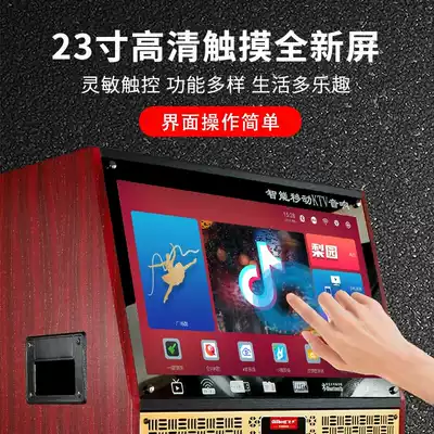 QS-10(17-inch touch screen) can be connected to voice, song, dual system, dual wireless charging microphone LX-L85 wood grain color (23-inch touch screen) can be connected to voice