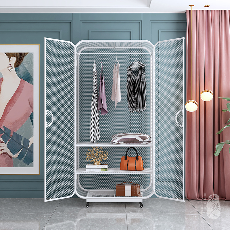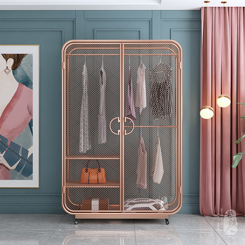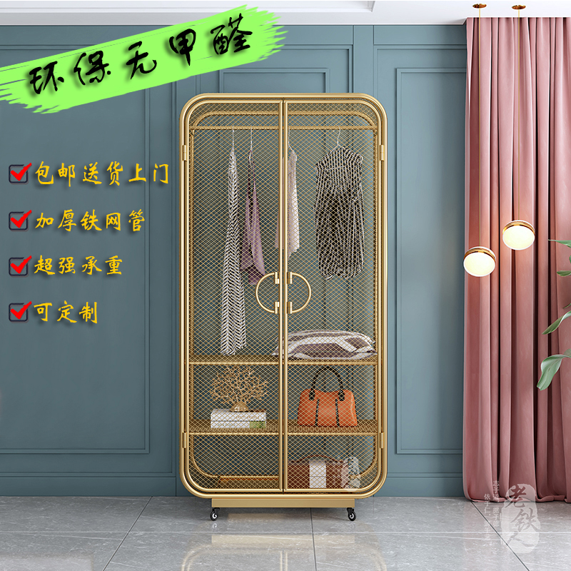 Nordic modern minimalist environmental protection light luxury metal mobile pulley beauty salon Coat wardrobe Wrought iron bedroom wardrobe