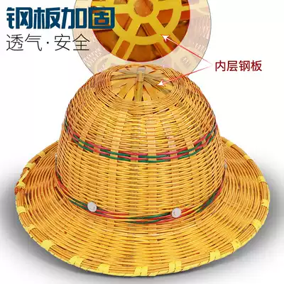 Bohan bamboo hard hat construction site male summer breathable helmet sunscreen sunshade big along bamboo rattan construction protection