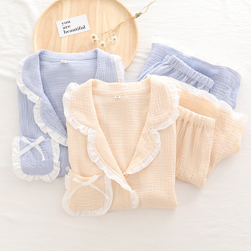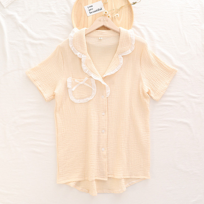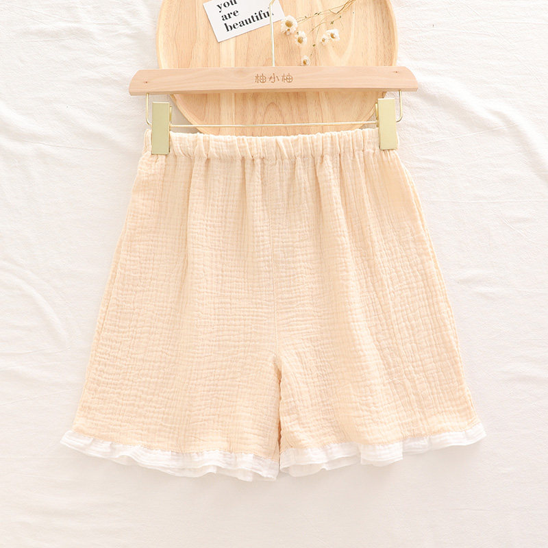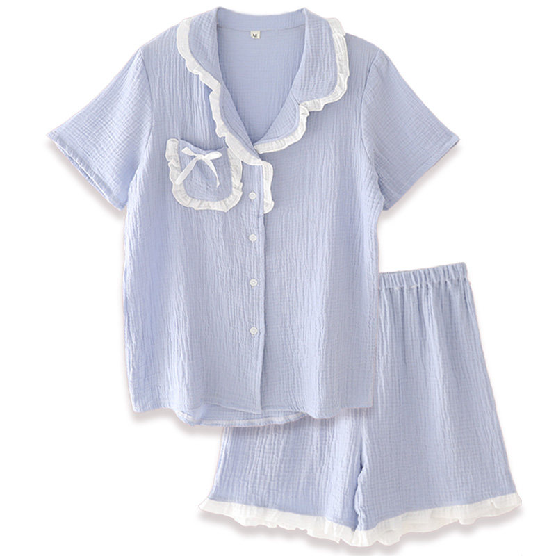 Ins summer thin cotton gauze lace sweet simple Japanese short-sleeved shorts cotton pajamas home clothes women