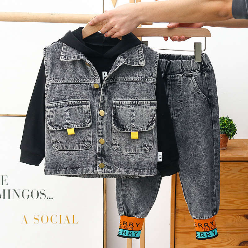 Boy Cowboy Suit 2021 Spring Autumn New Children Foreign Pie Clothing Three Sets Children Han's Version Baby Suit