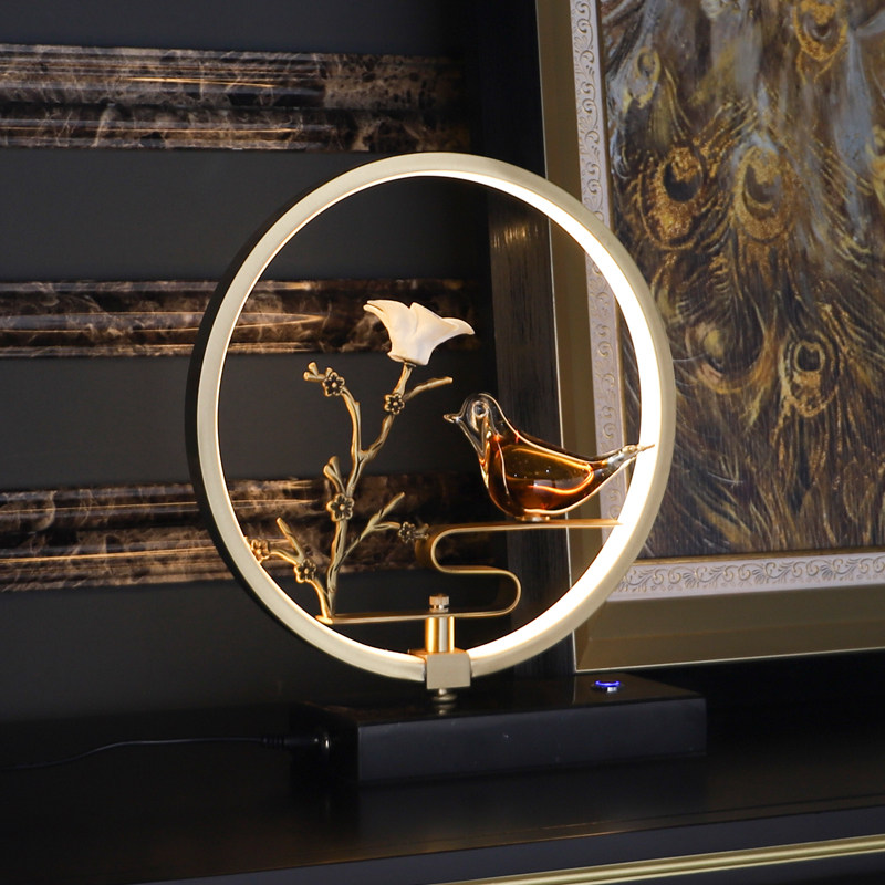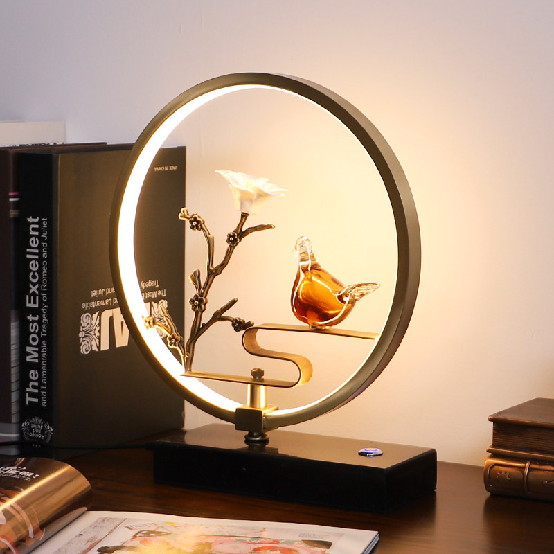 Table light bed head lamp Chinese style bedroom home full copper romantic cozy creative net red humbling little bird Zen Yiddei
