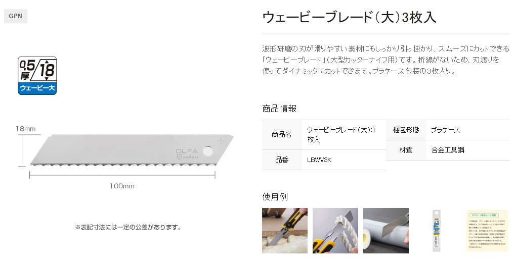 Japan's original imported OLFA Ailihua LWB-3B large wave-shaped blade blade wave-shaped anti-skid cutting blade 18mm wide 3 pieces
