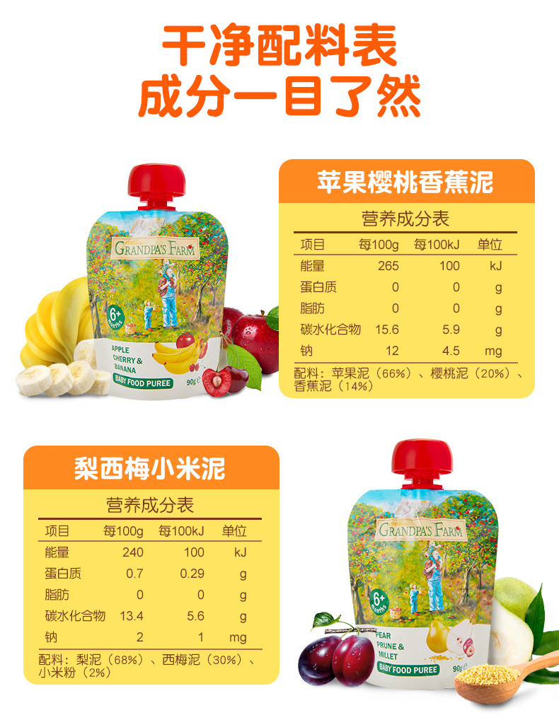 Grandpa's Farm Apple Peach Cimei Plum Cherry Mixed Fruit Clay Europe Original Imported Nutrient Juice Clay 90g bags