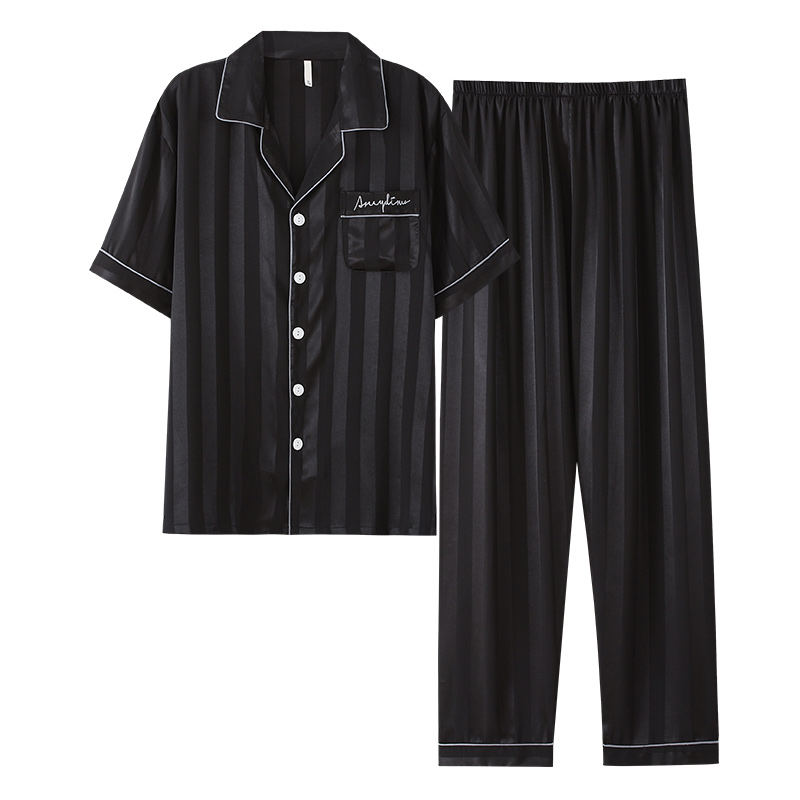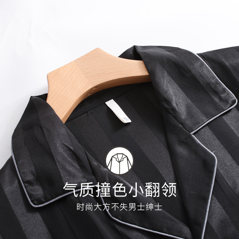 2021 couple pajamas women's summer ice silk short-sleeved trousers thin home clothes men's black imitation silk suit