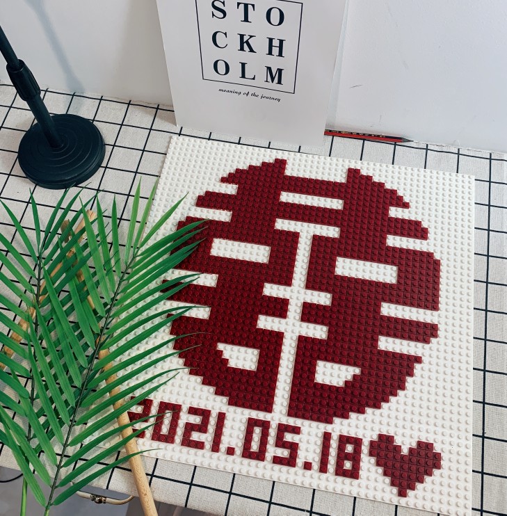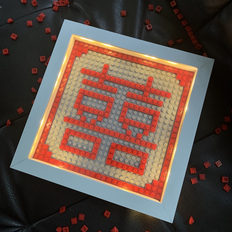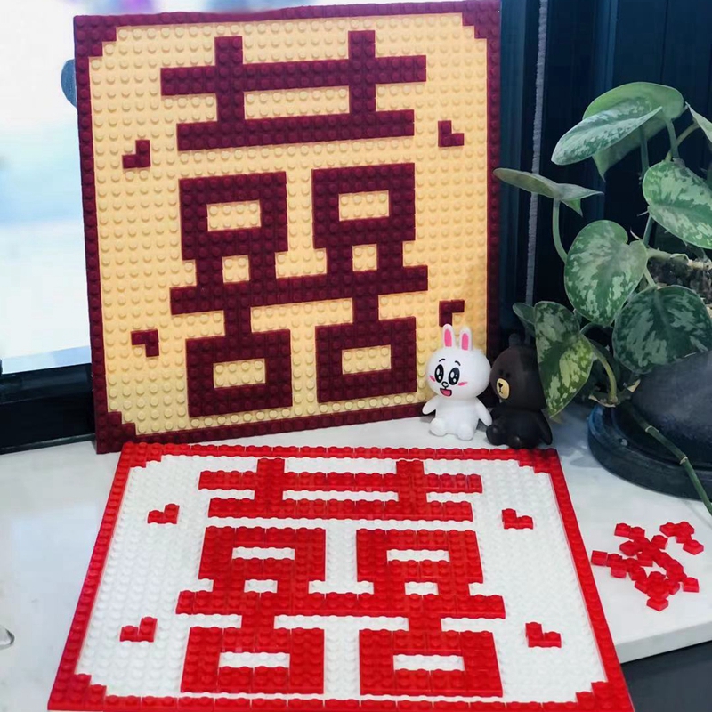 Xiaohongshu with the same paragraph happy word building block photo frame compatible with Lego small particles assembled newly married wedding creative gift decoration