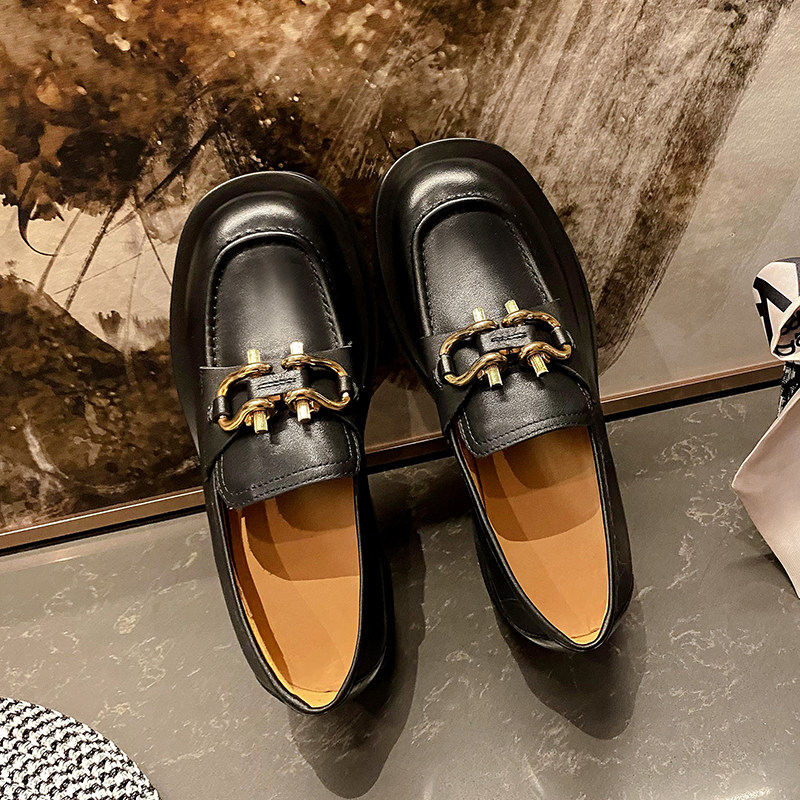 Lefoe shoes female Inn Wind comeback ancient pine pastry thicken small leather shoes women Summer 2021 new Foot Pedal Thick Bottom Bag Shoes