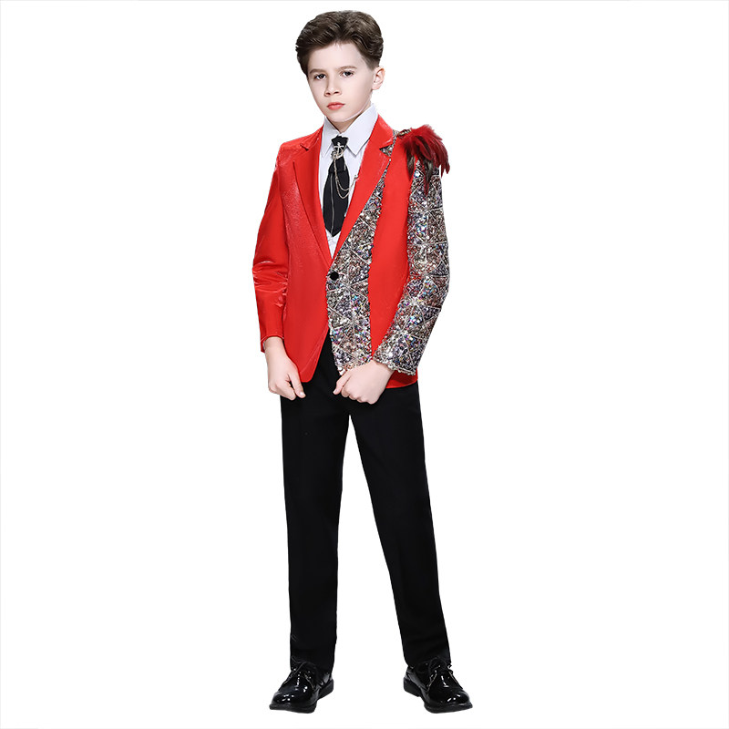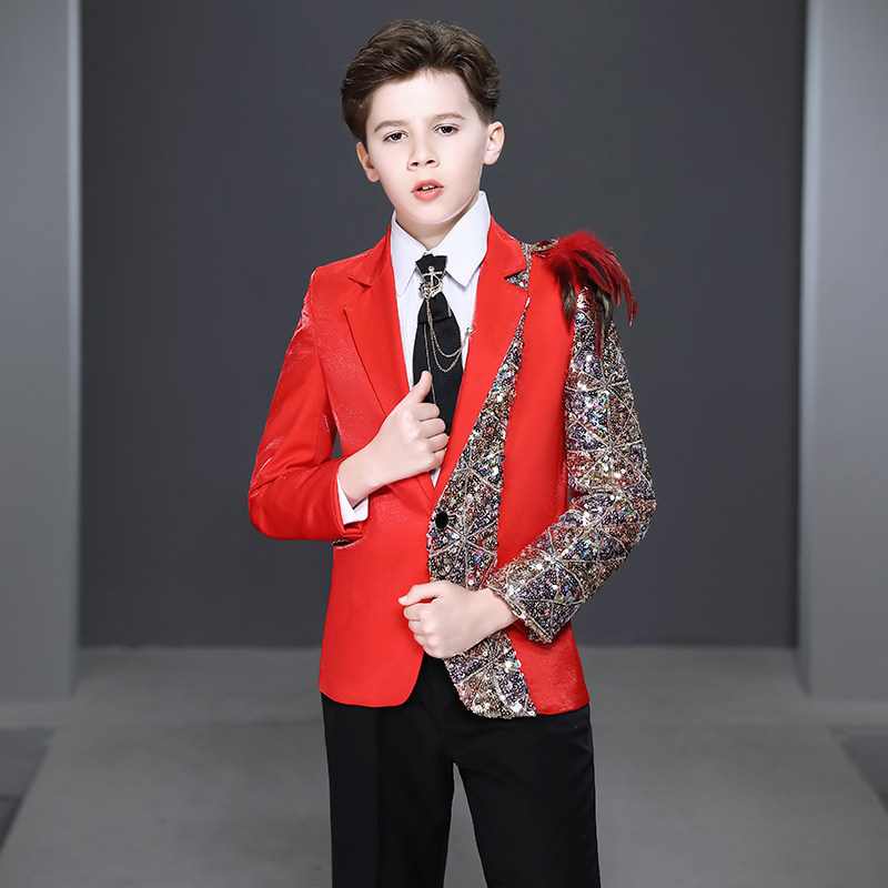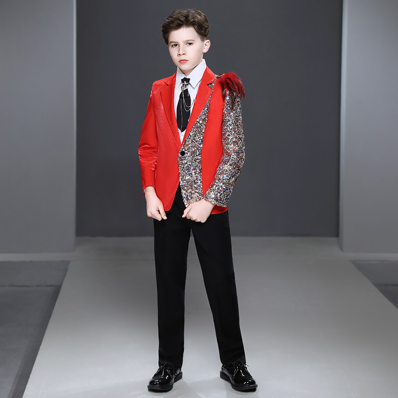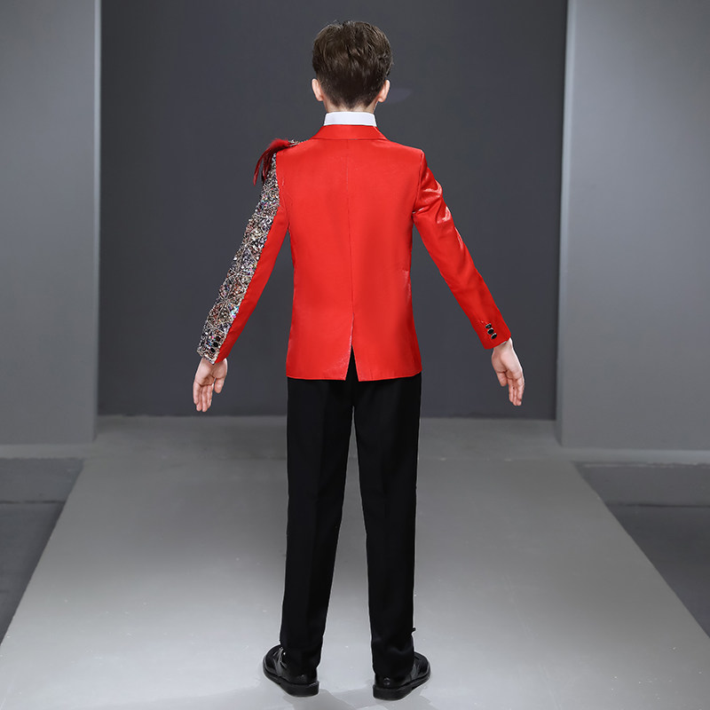 Children acting out of flower boy boy little suit suit Shuai Inron Wind model walking show red host gown