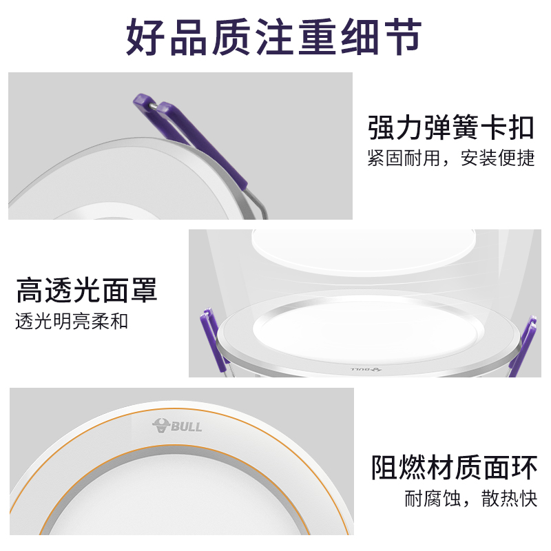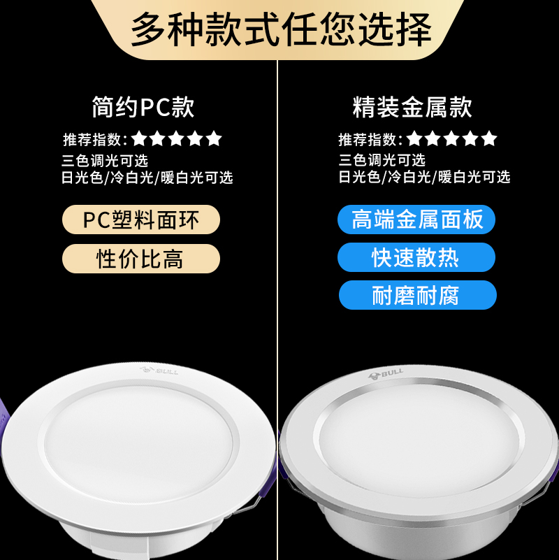 Bull LED metal downlight embedded three-color dimming home ceiling light 7 5 10 cm 3 inch hole light spotlight