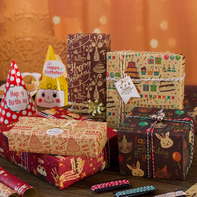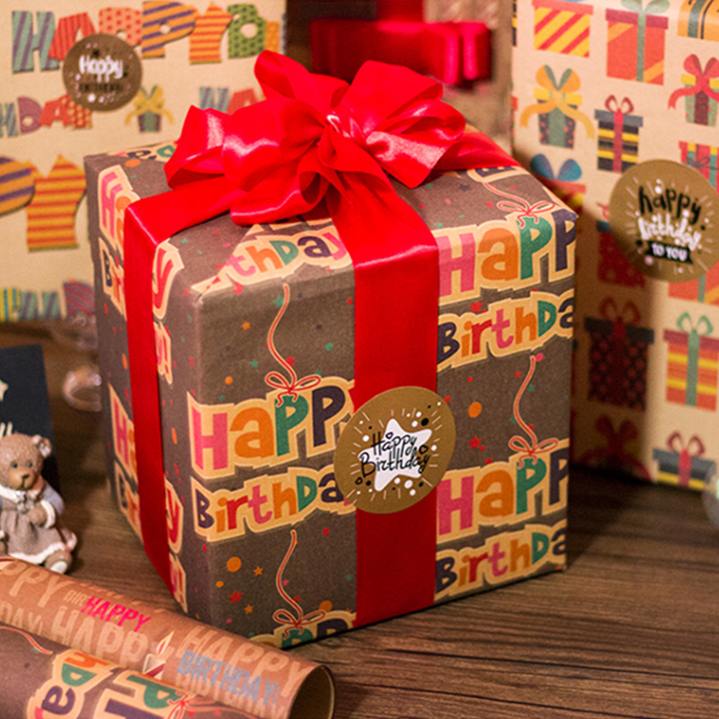 Birthday gift wrapping paper male and female students children's gifts super size size cute happy ins send boyfriend shoes box custom logo custom vintage cartoon party kraft paper handmade material