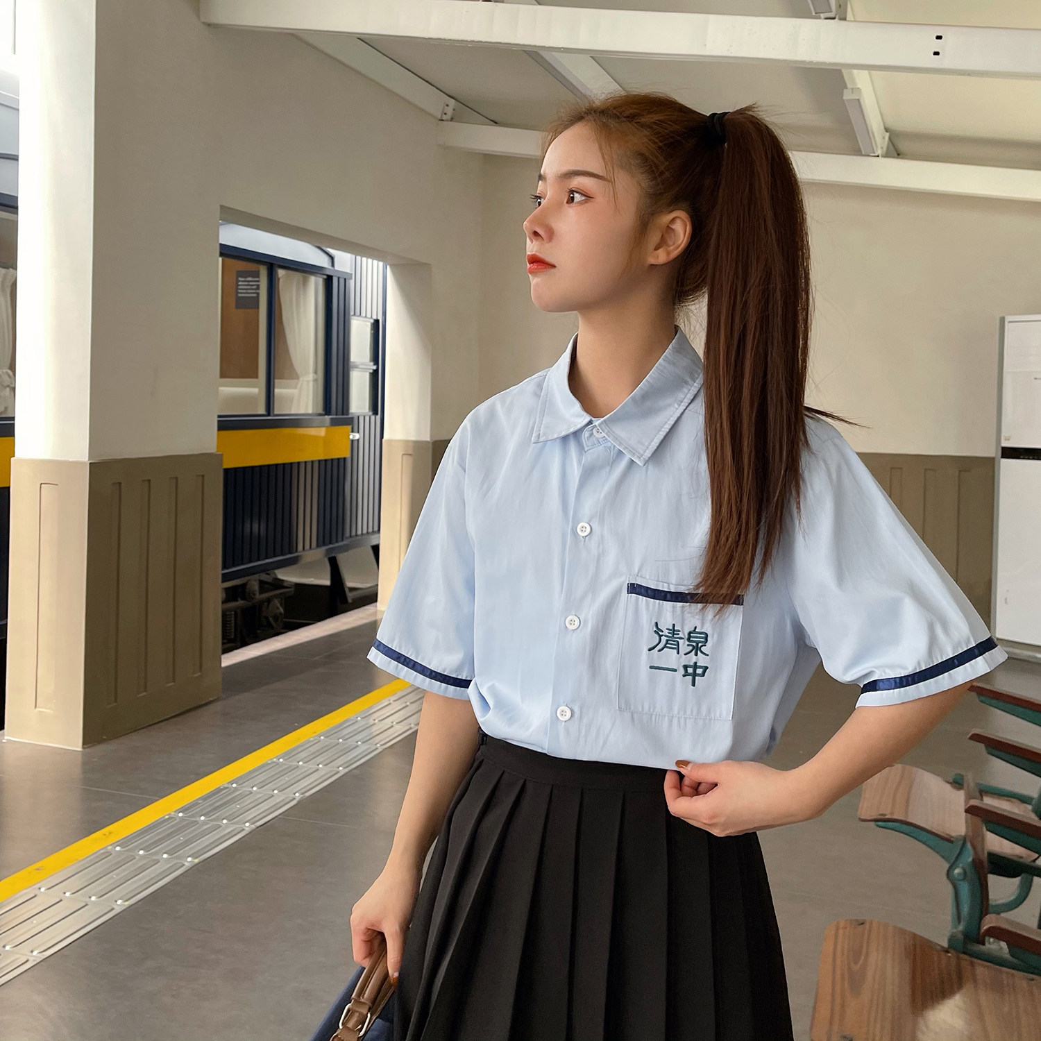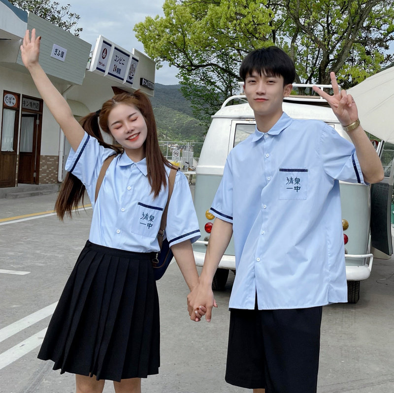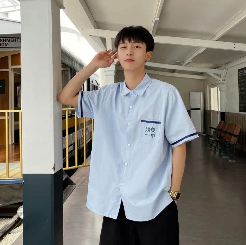 Class uniform high school student summer dk uniform male xiao lan medium short sleeve shirt Thai school uniform jk uniform summer student suit