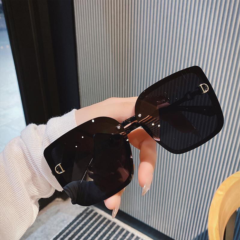 Sunglasses Trendy Men's Korean Fashion Summer Sunshade Black Sunglasses Women Street Shot Plain Face Covering Glasses Comfortable