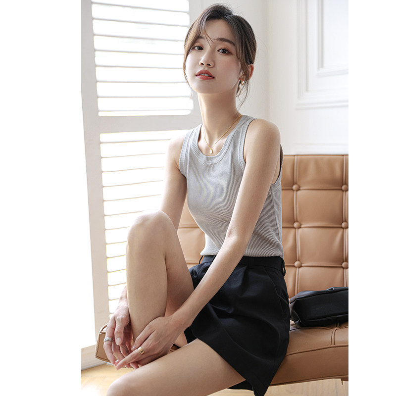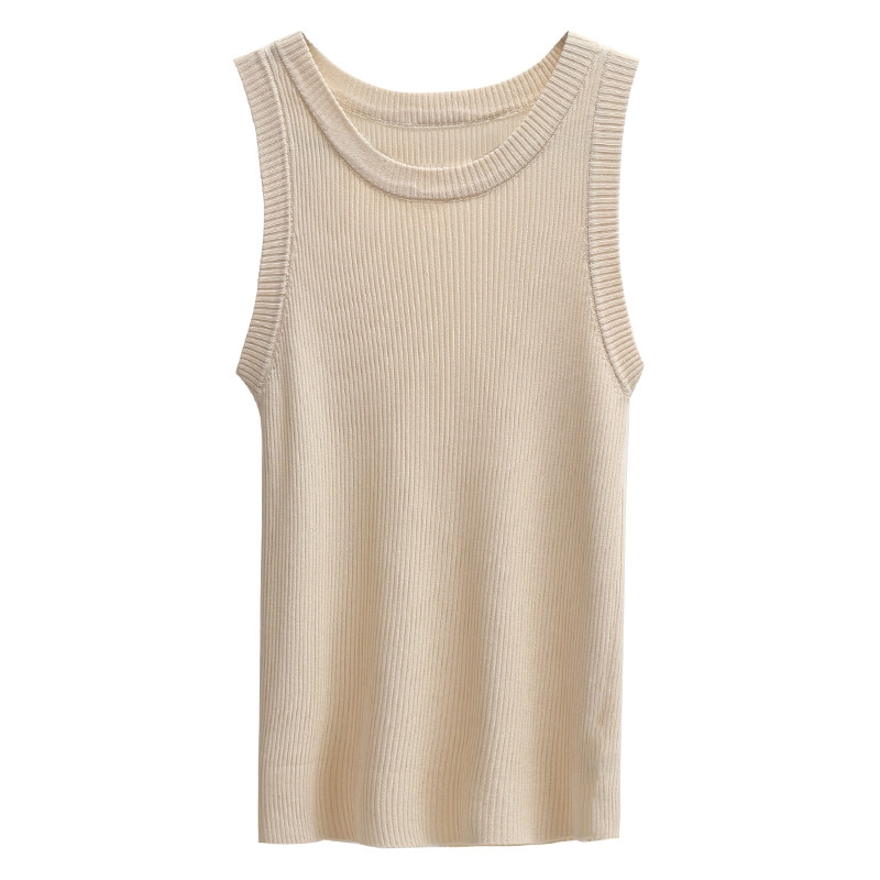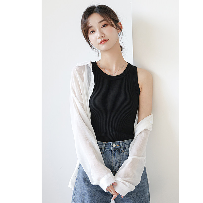 Ice Wire Harness Vest Woman Summer Tight Fit Outside Wearing Black White Round Collar Sleeveless Knit Undershirt T-shirt Blouse