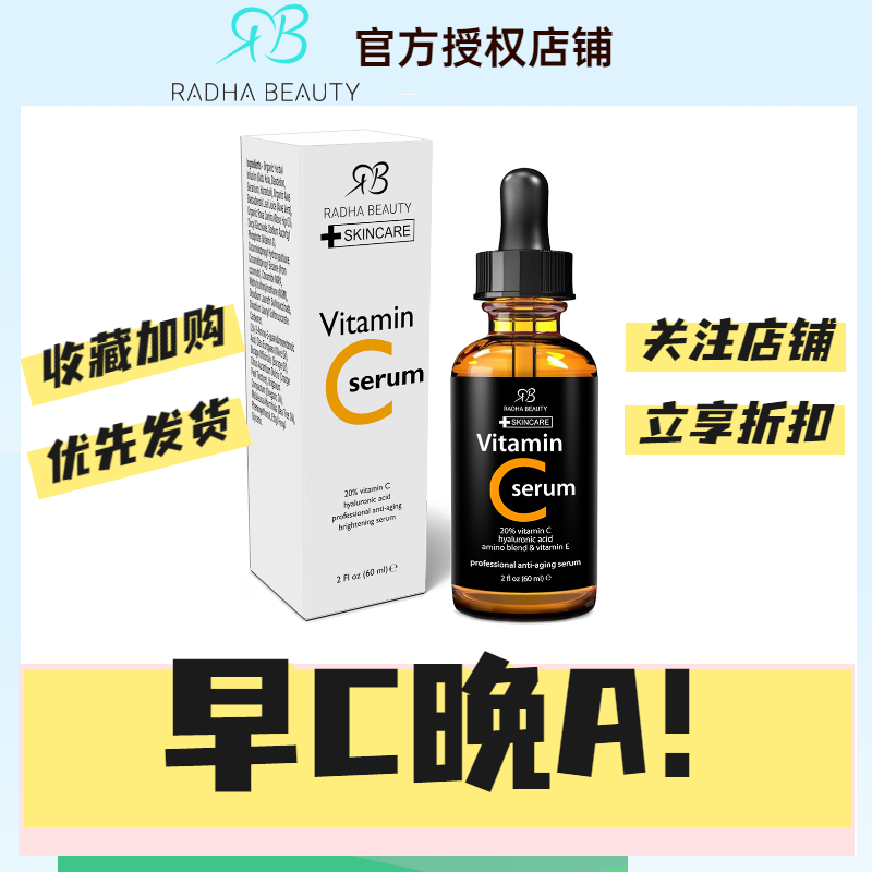 Morning C Evening A C American Radha Beauty VC Essence RB Small Orange Bottle Firmly Brightens Skin Tone and Fades Acne Marks