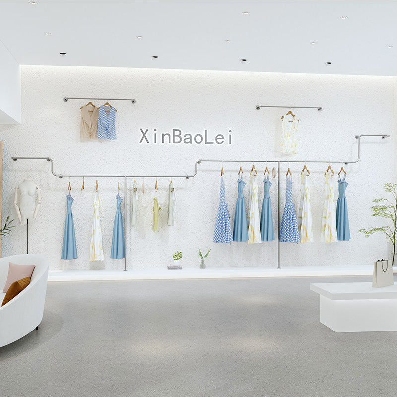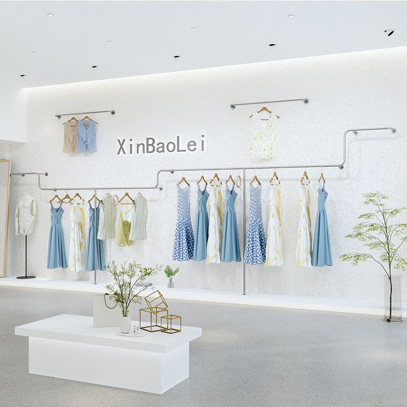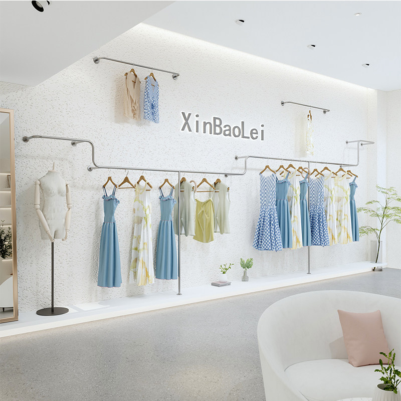 Clothing store display rack Display rack on the wall hanging stainless steel hanging clothes rack Modern Korean style women's clothing store rack