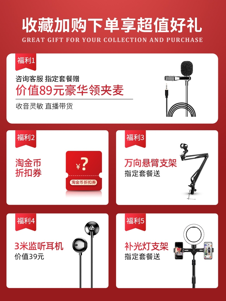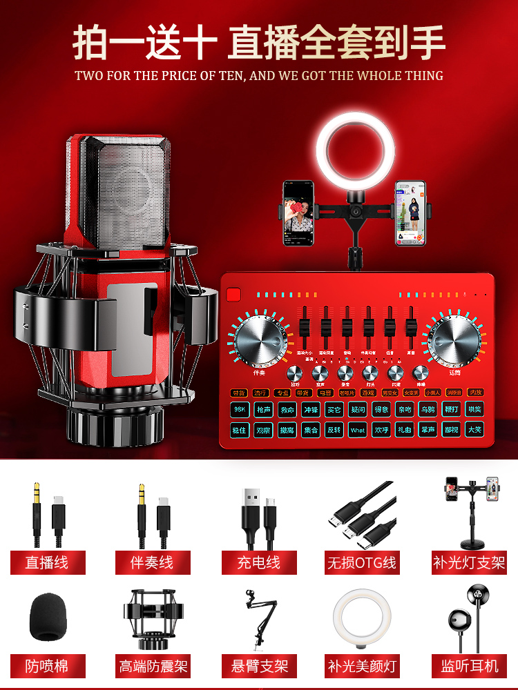 ⭐(Live sound package)Zhenggong Red M80 sound card Zhenggong Red A7 microphone beauty light bracket