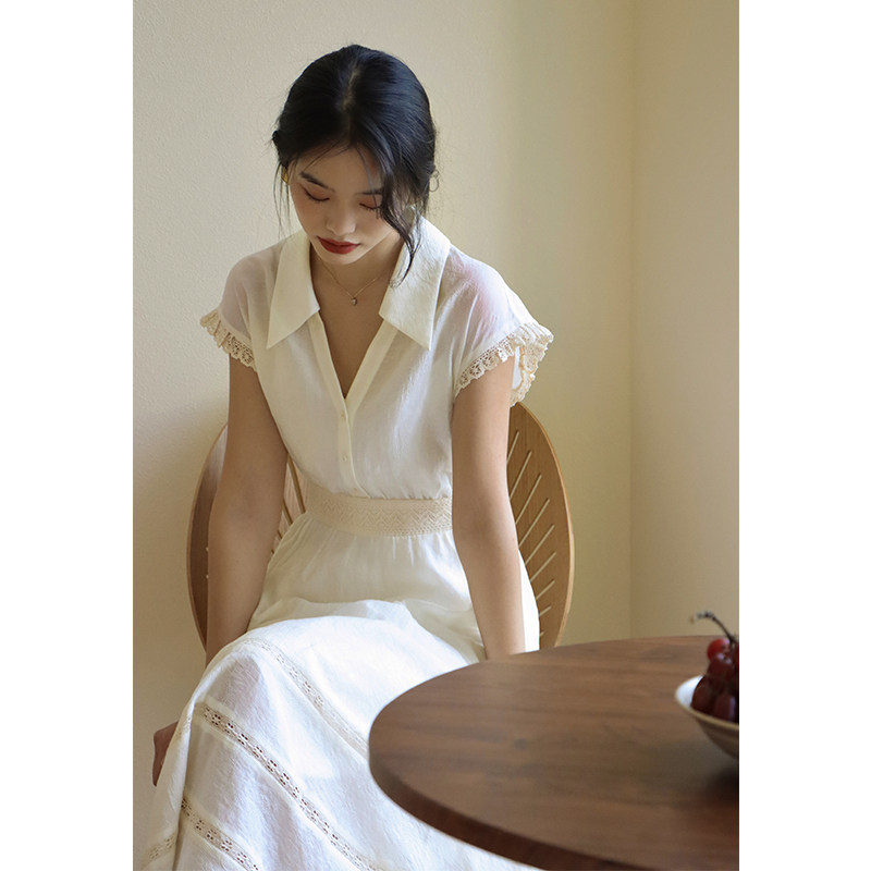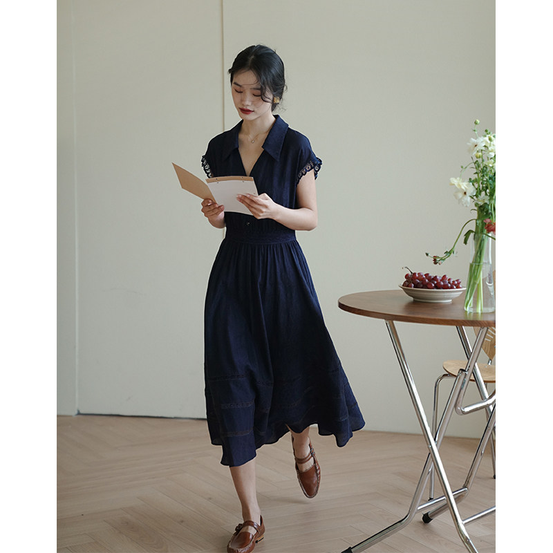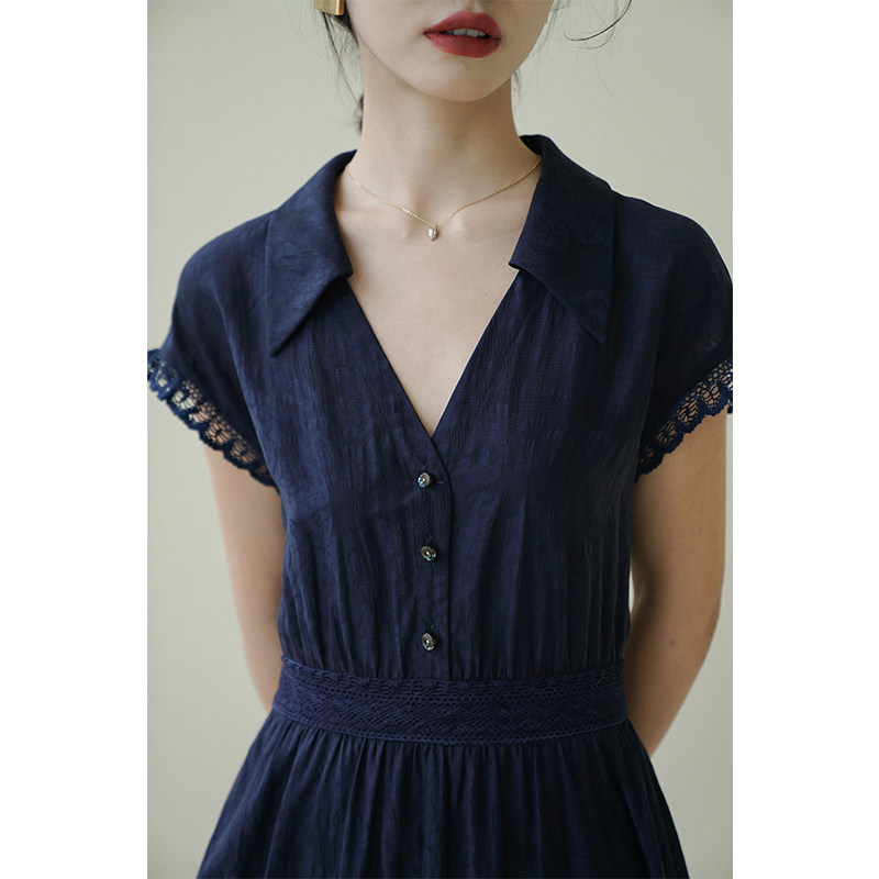nicepeople French retro V-neck short-sleeved large umbrella black dress with waist and slim version of the little black dress