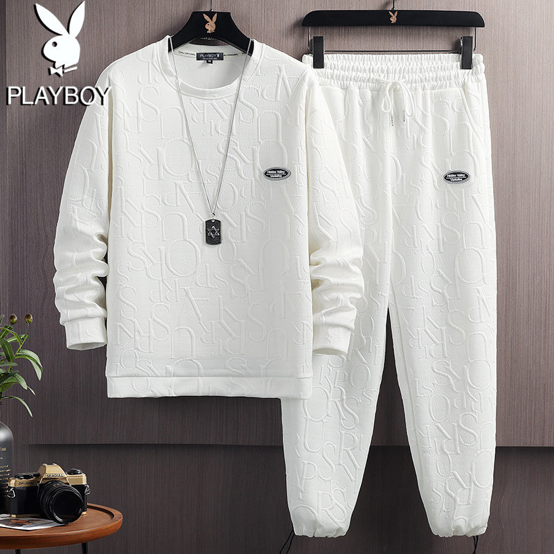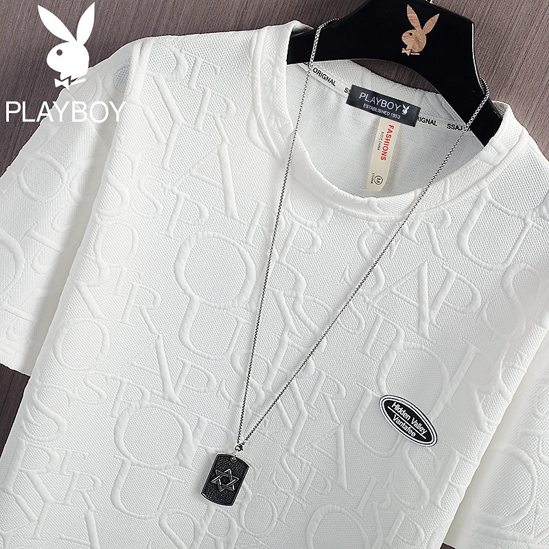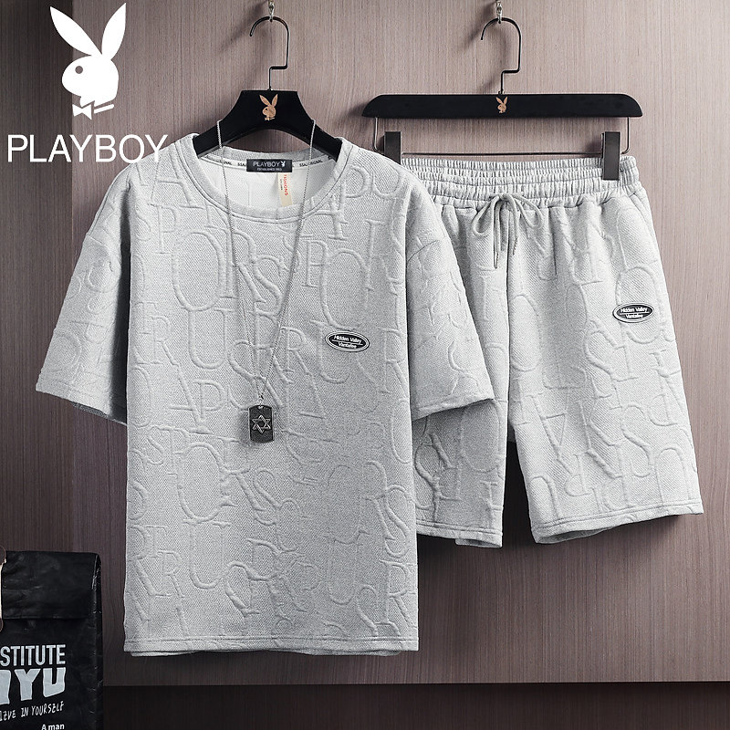 Flower Playboy Summer T-shirt men loose round collar men's outfit set with casual short sleeves suit male trend