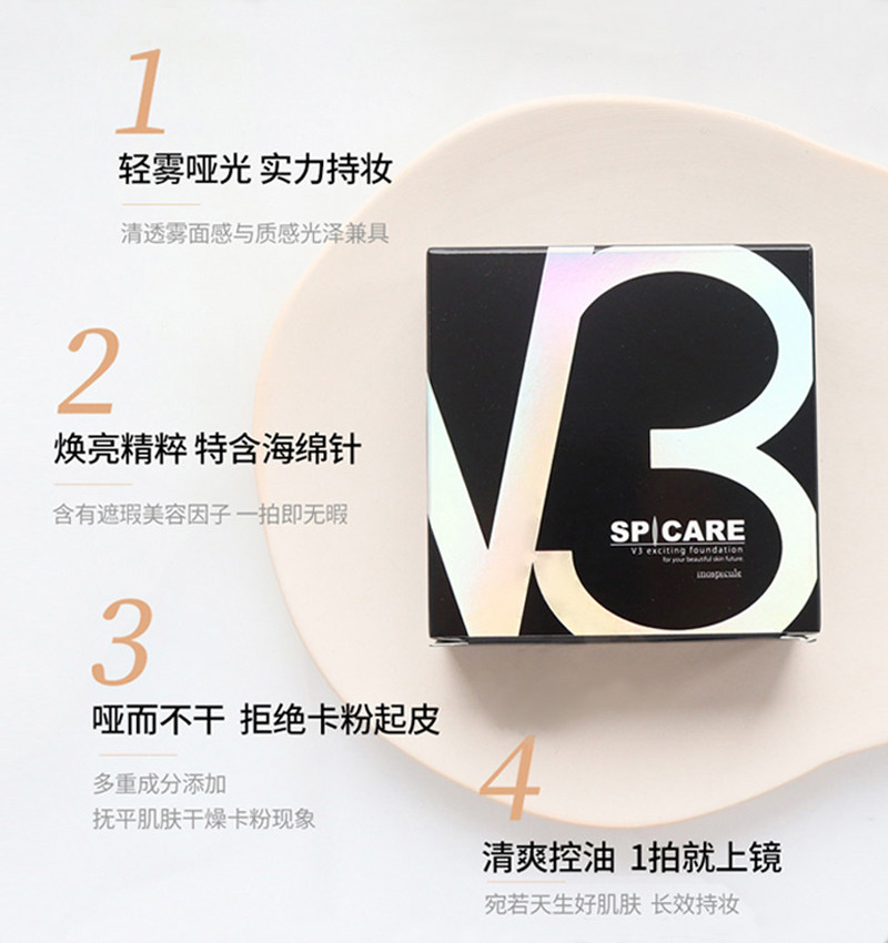 Japan Spacare natural microneedle water light V3 air cushion powder bottom liquid lifting and flawless lasting moisturizing skin 15g