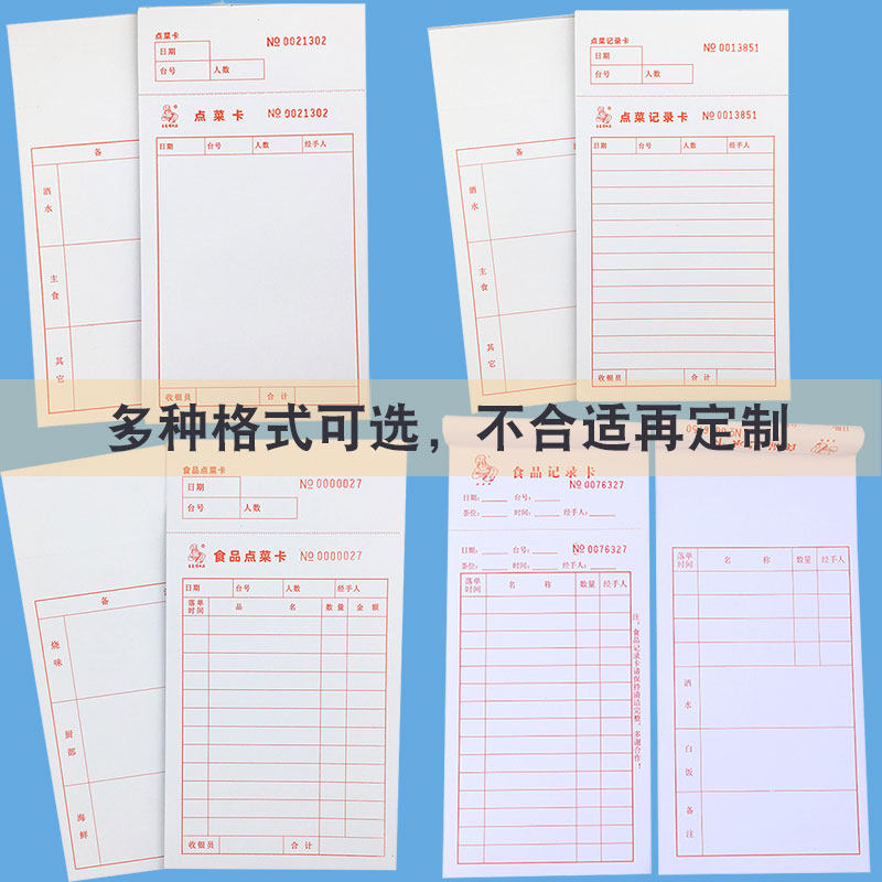 48K two-point menu (20 books) A la carte card (20 books) A la carte record card (20 books)Food a la carte card(20 books) Food record card (50 books)Custom shot
