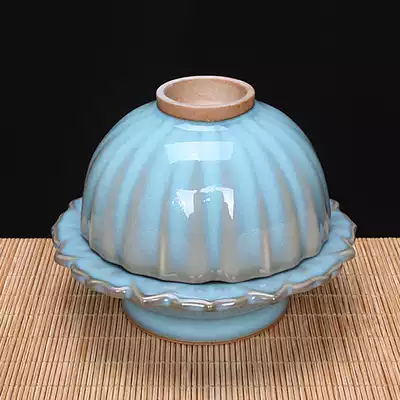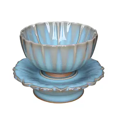 Jun porcelain sky green glaze lotus Cup combination master hand signed Chinese traditional craft master Wang Jianwei hand work