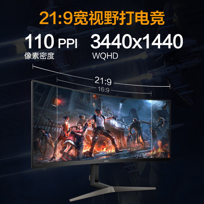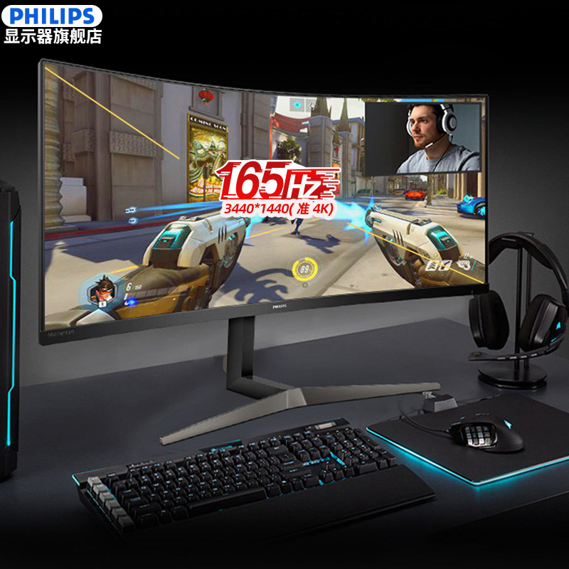 Philips 345M2CRZ 34-inch 165Hz E-sports quasi-4K monitor 2K ultra-wide band fish screen HDR computer eating chicken 144Hz game screen 1ms response multi-source same