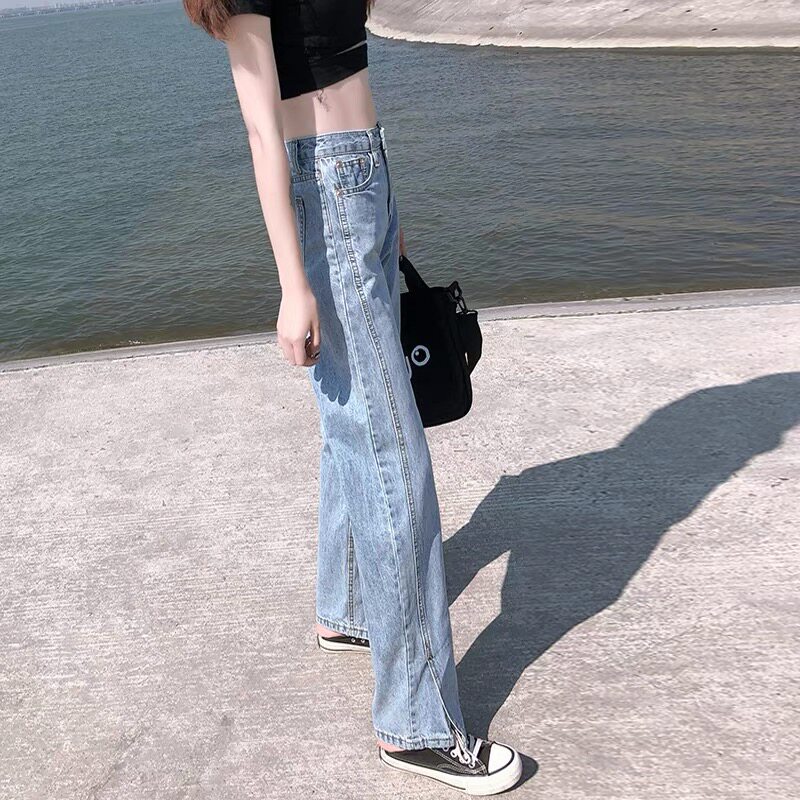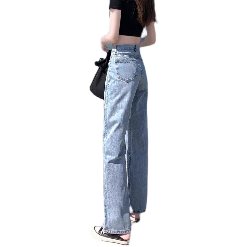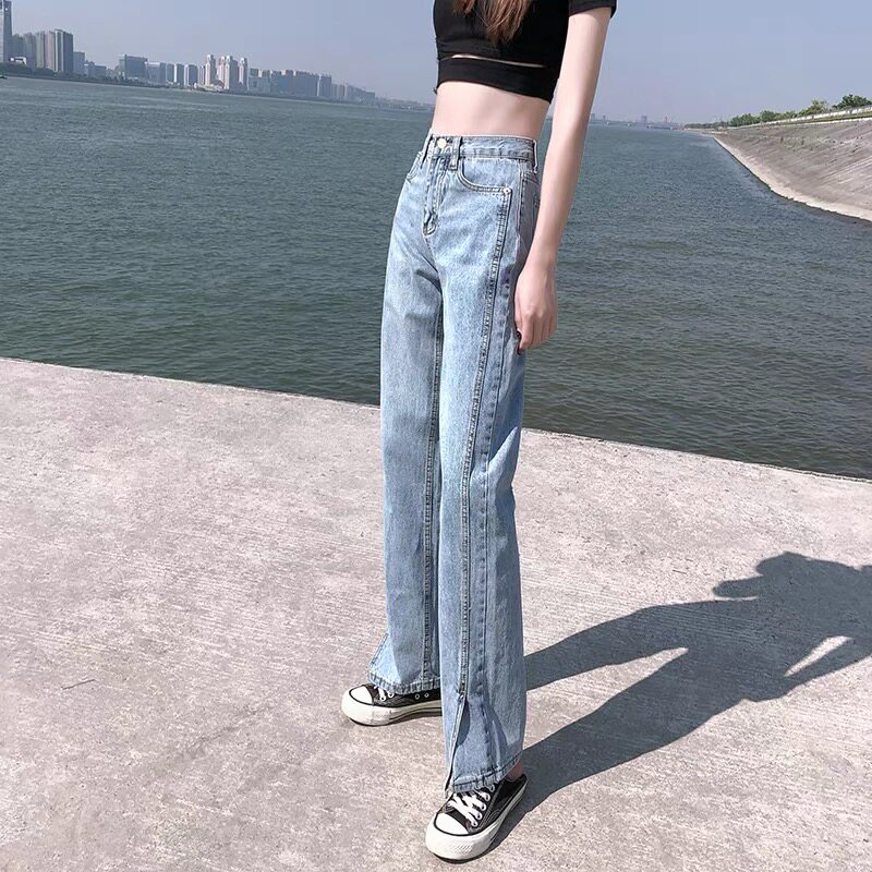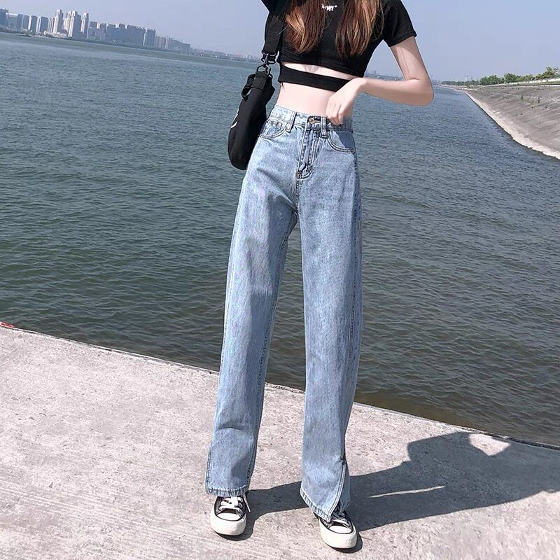South Korea's open - legged jeans 2022 new high - waist straight tube loose drag - floor jeans