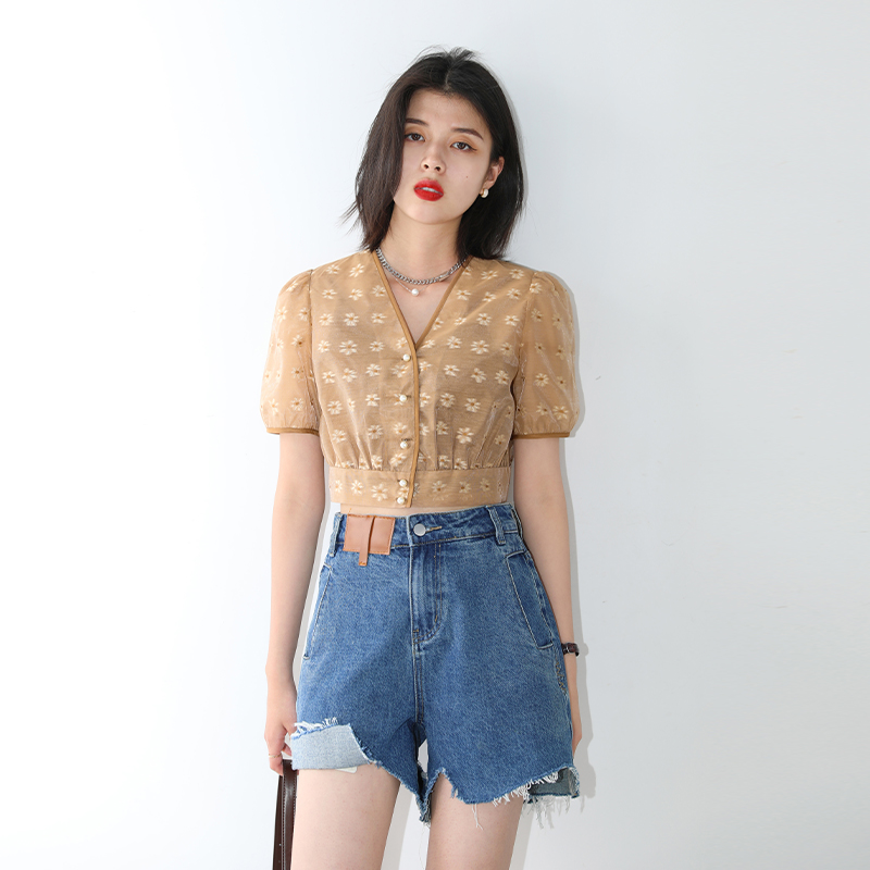 Chicken "Oriental Fantasy" Original sister's Eugen Yarn Dress Retro V-collar shirt