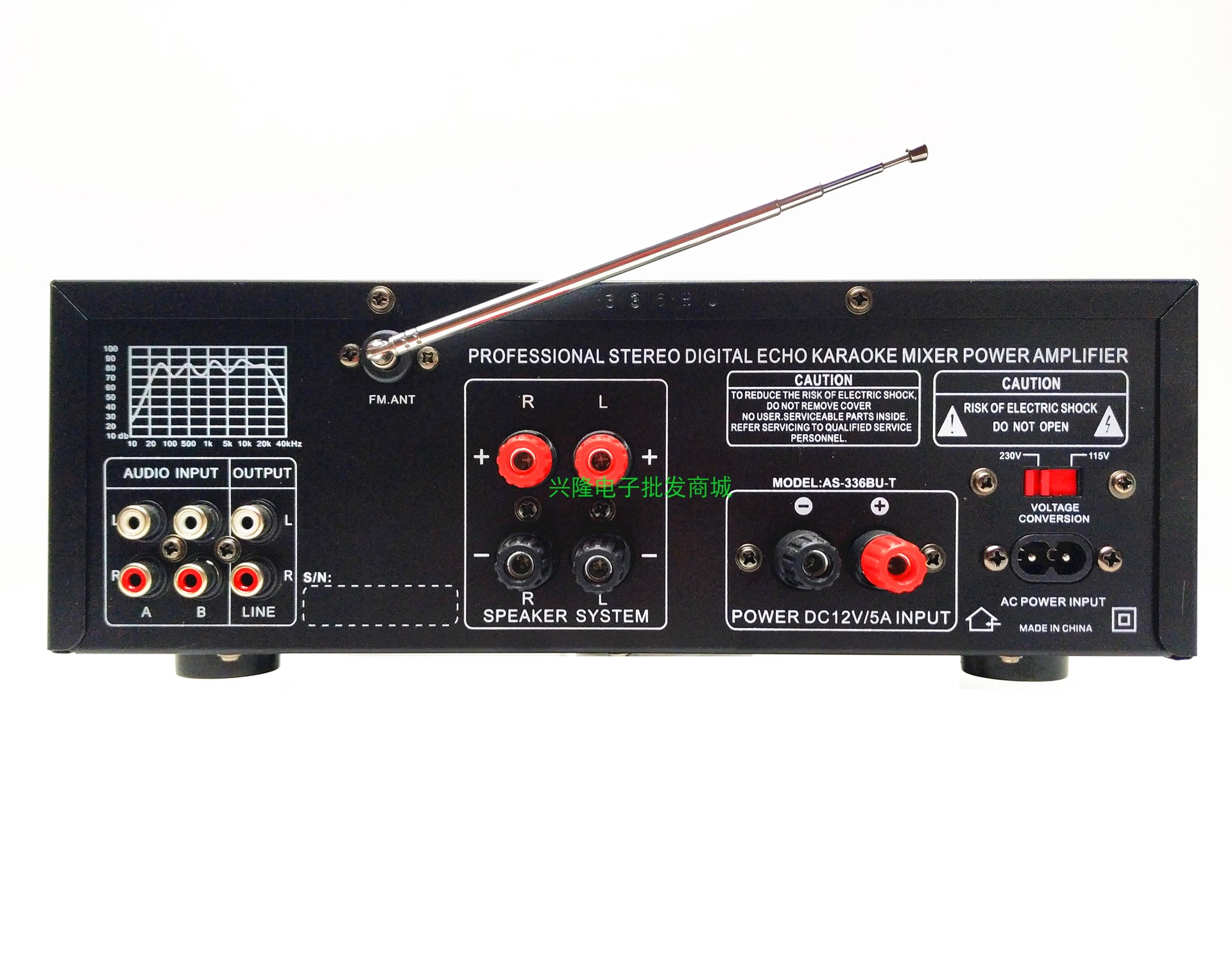 Home 220V12v Sound power amplifier AS-336BUSB Bluetooth customized 110V power amplifier dual track