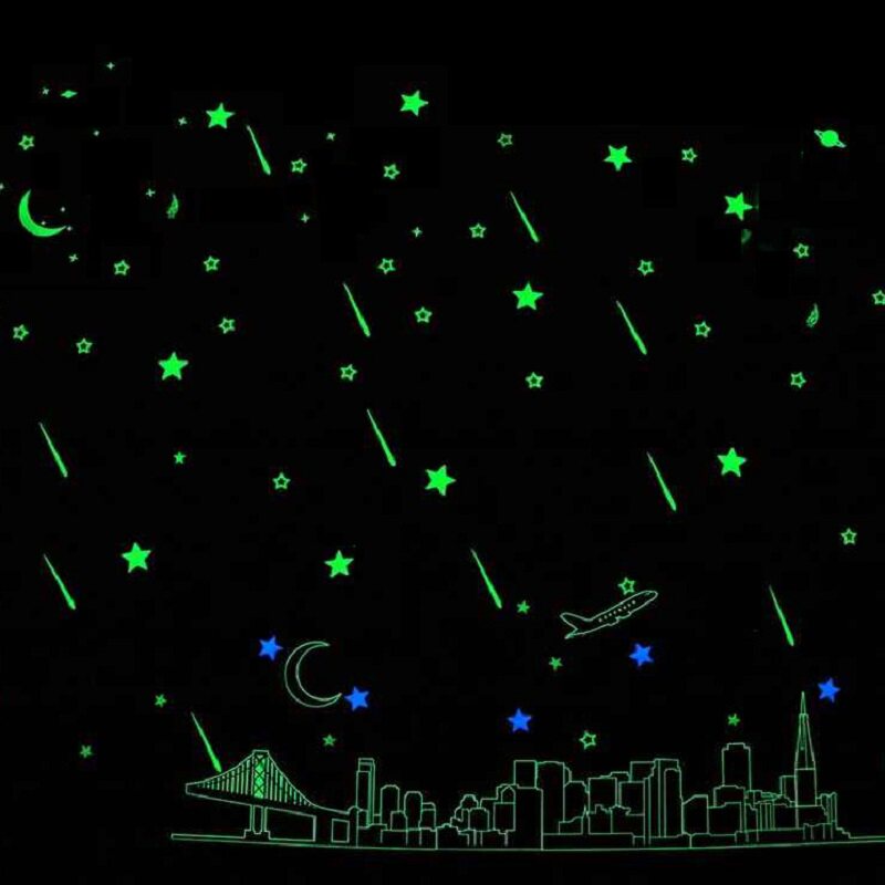 100Pcs Global In The Dark Stars Moon Decal Art Wall Sticker