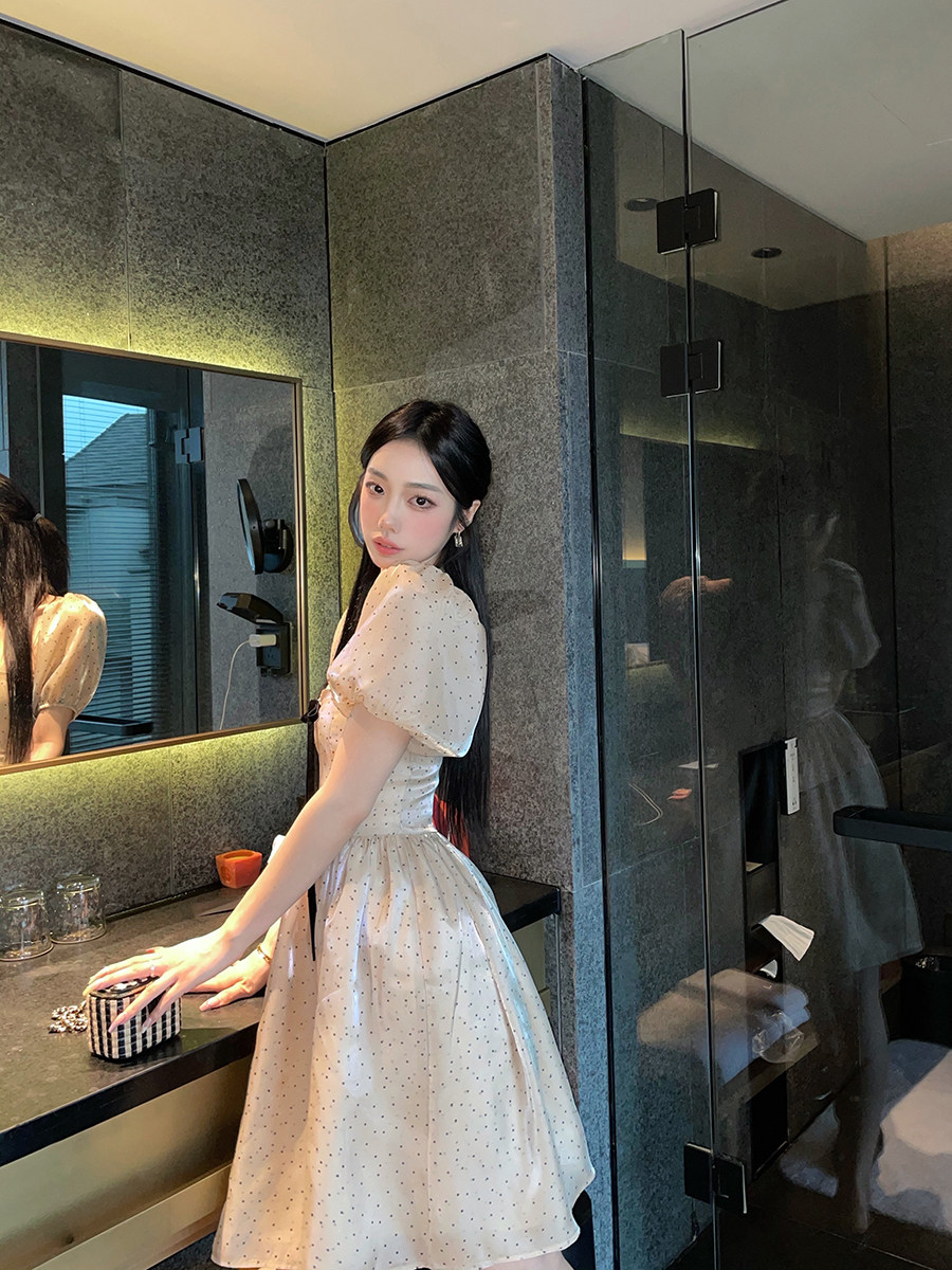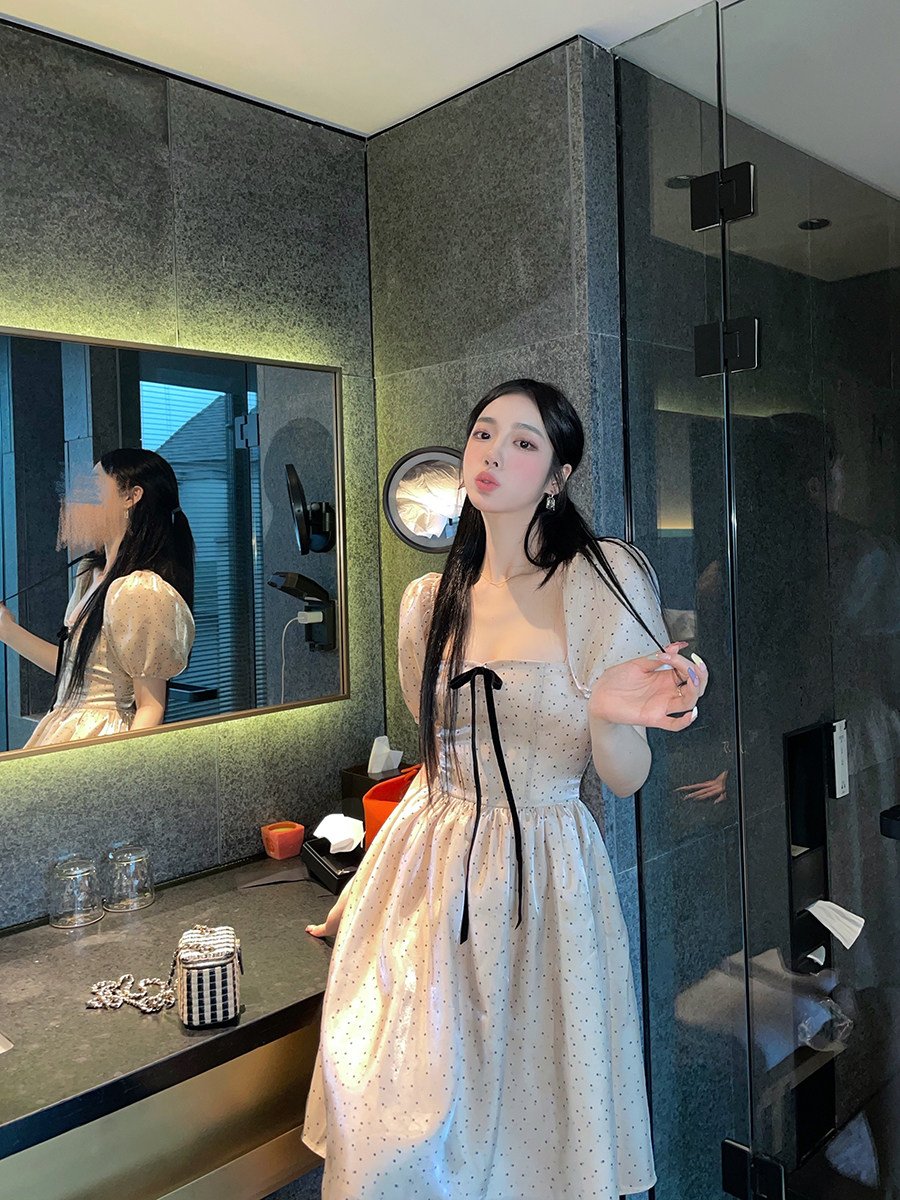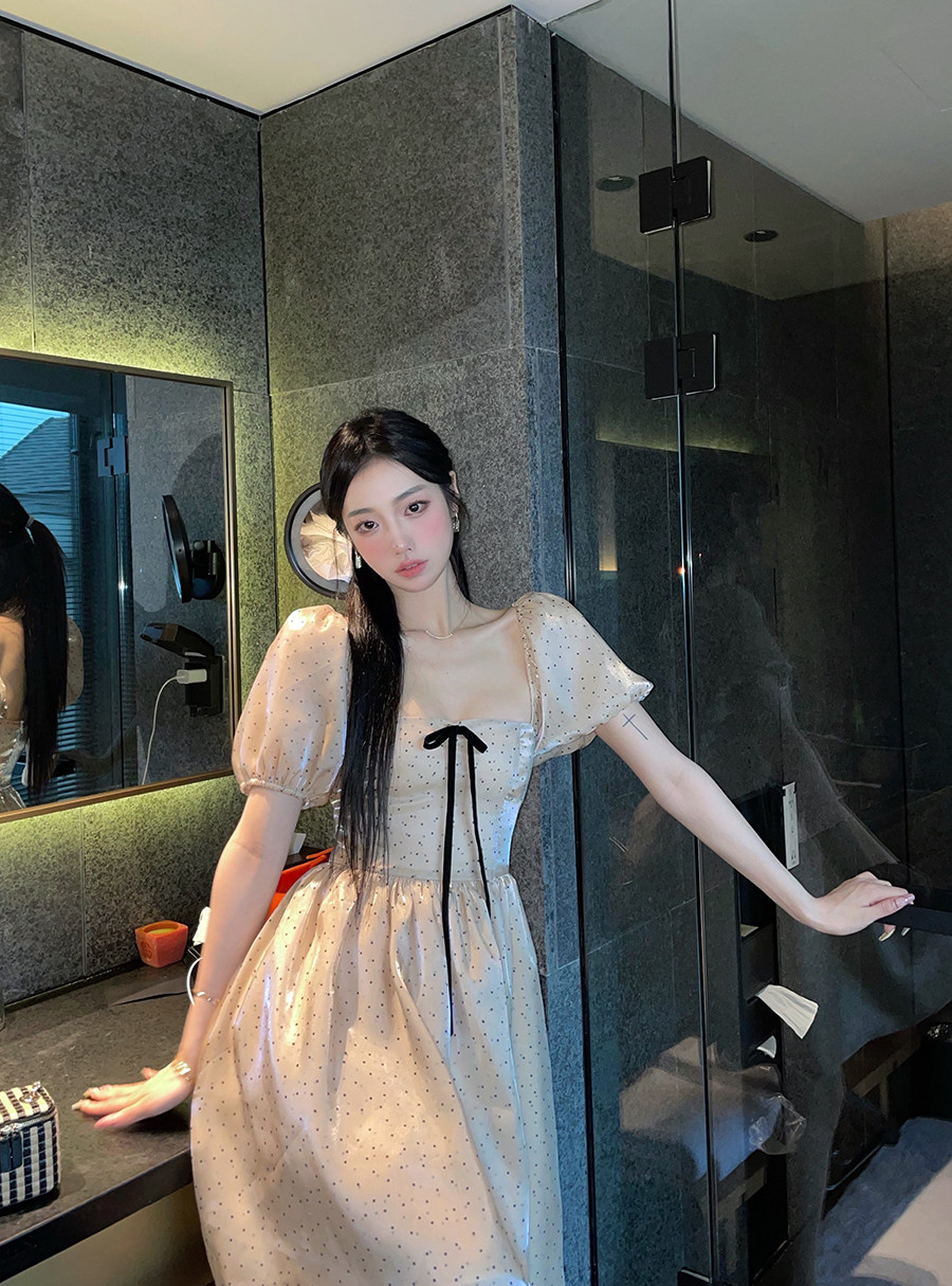 (LaluneDuCiel) LLDC champagne Bubbles Cuff Polo Dot Ocean Dress Butterfly Knot Fairy Fluffy Skirt