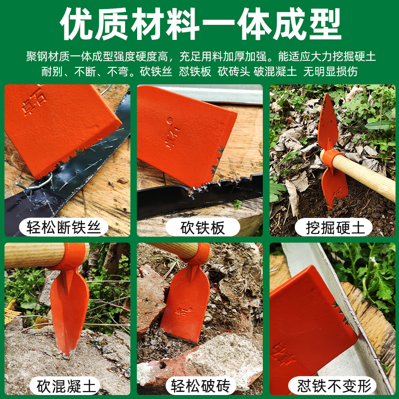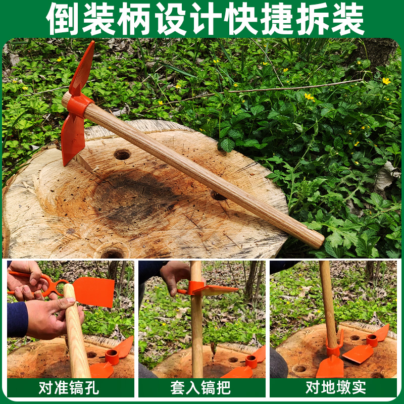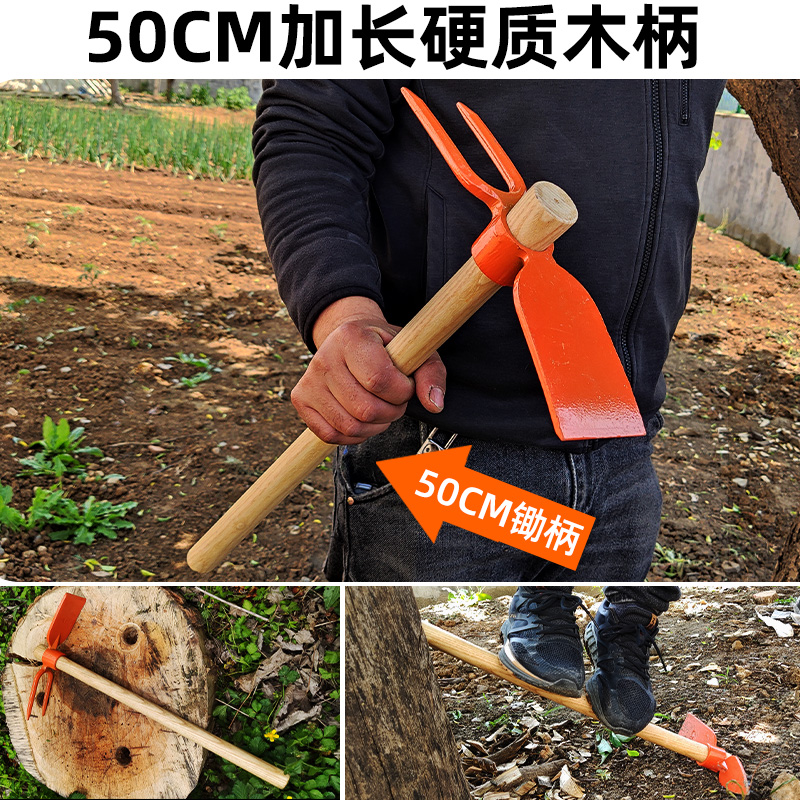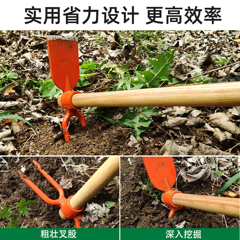 Small hoe household vegetable weeding artifact outdoor two-tooth hoe digs the ground to loosen the soil and dig bamboo shoots agricultural tools Daquan