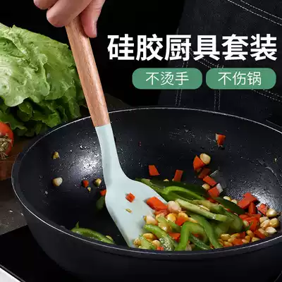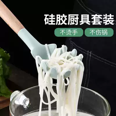 Silicone spatula non-stick pot special shovel set high temperature resistant household food grade wooden handle spoon small fried shovel dormitory