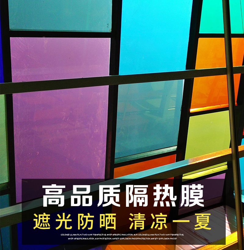 Stained cellophane window stickers office glass sunscreen insulation film shower room explosion-proof film blue decorative stickers