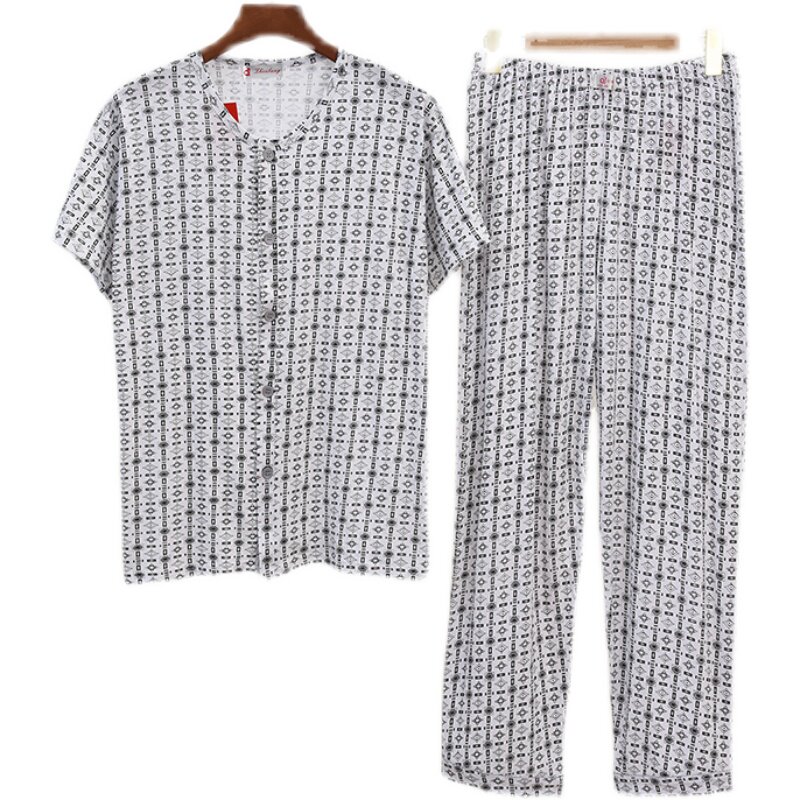 Middle aged men's pure cotton pyjamas suit dad Xia Bo-style cardiovert short sleeve long pants large size casual home suit suit