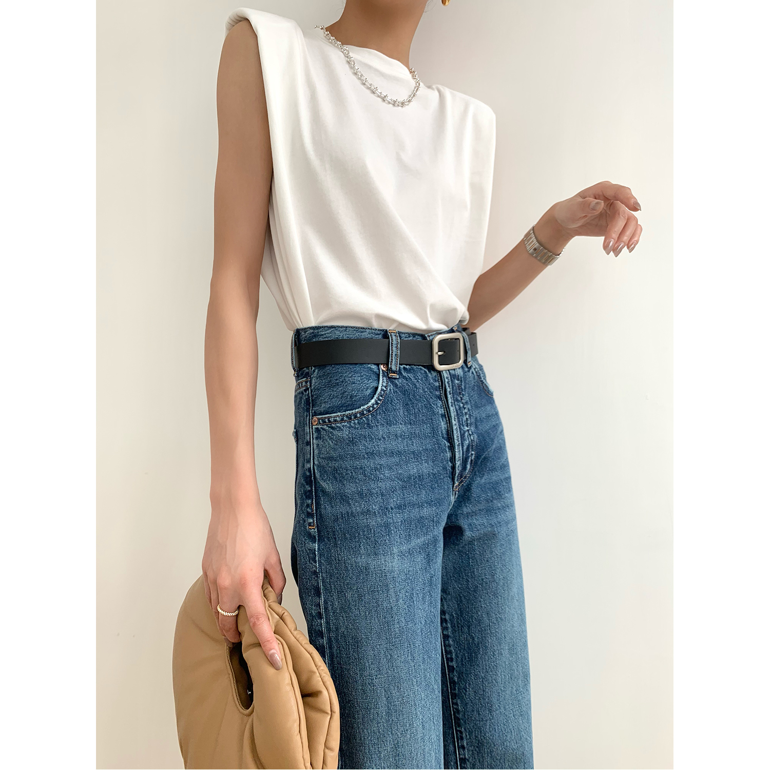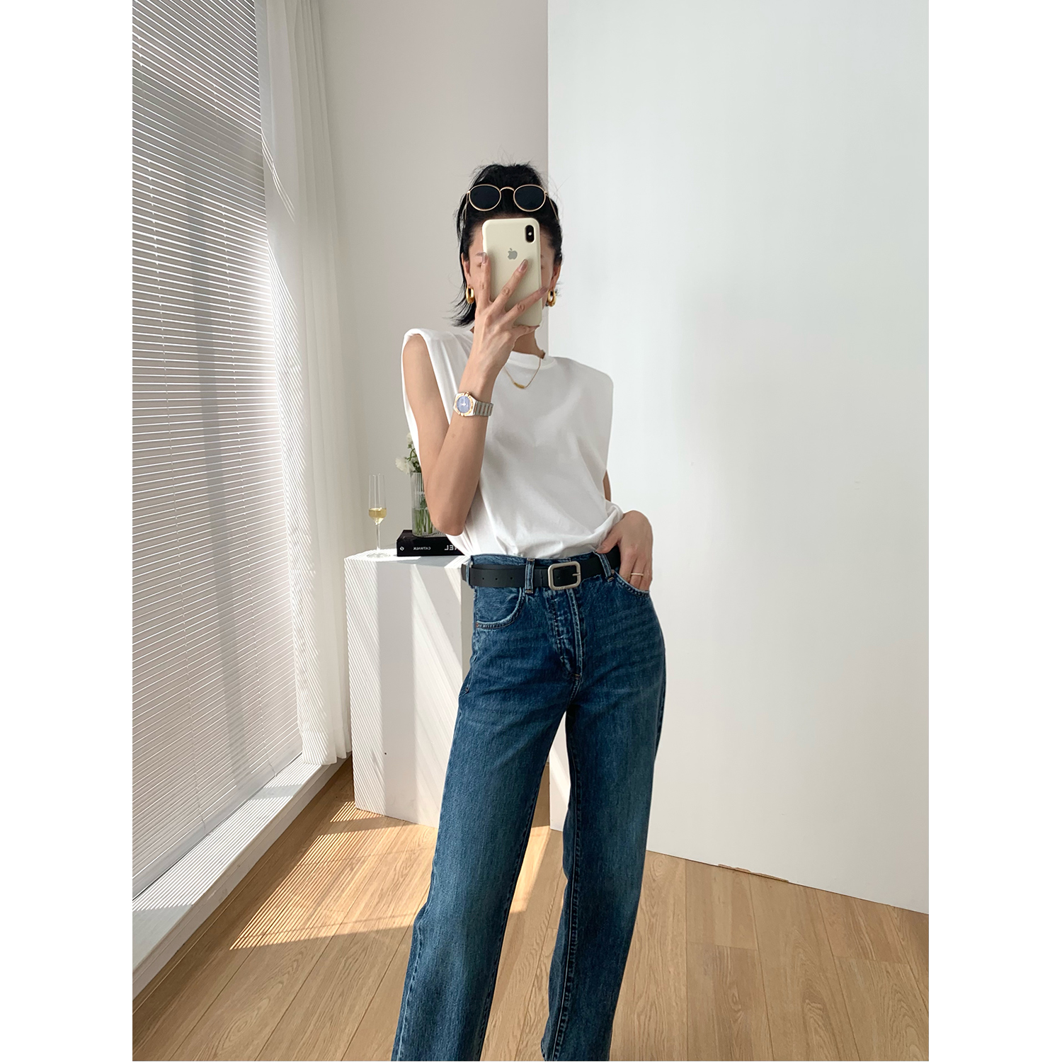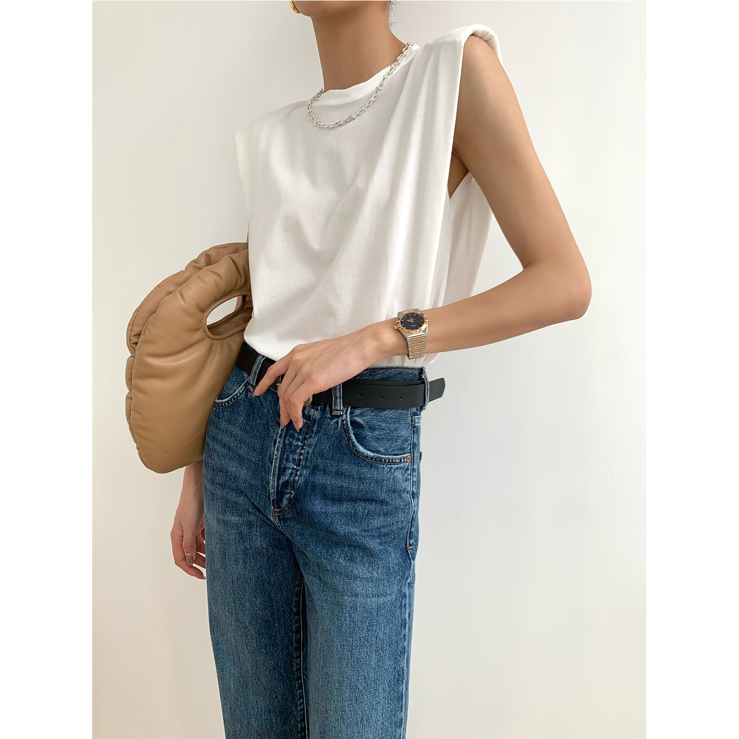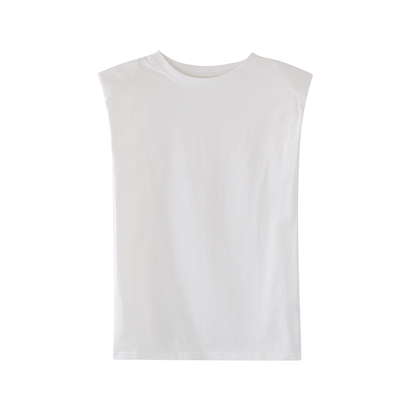 Sleeveless Blouse White Undershirt European and American Angle Padded Shoulder Lotus Leaf Cuff T-shirt Woman Ins Loose Tide Round Collar Vest