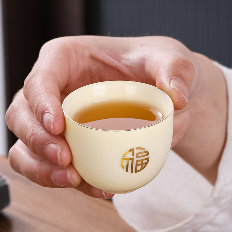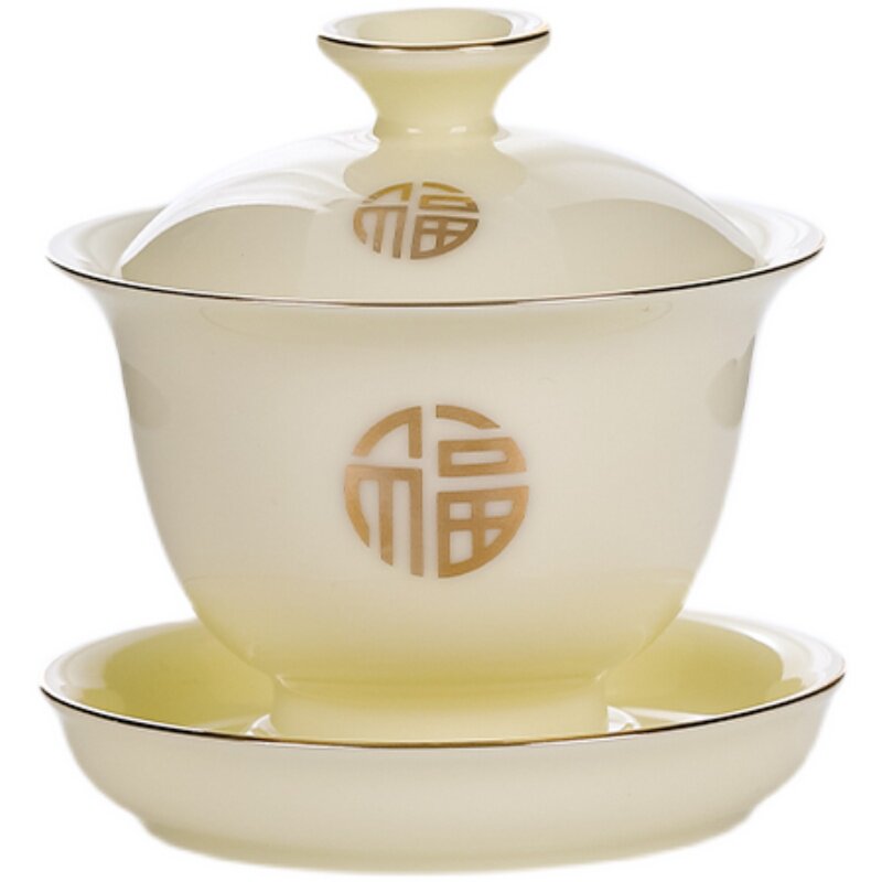 Jewel Wong Kung fu tea with three talents cover Bowl Tea Without Hot hand ceramic Tea Road accessories Single fair cup small tea cup-Taobao