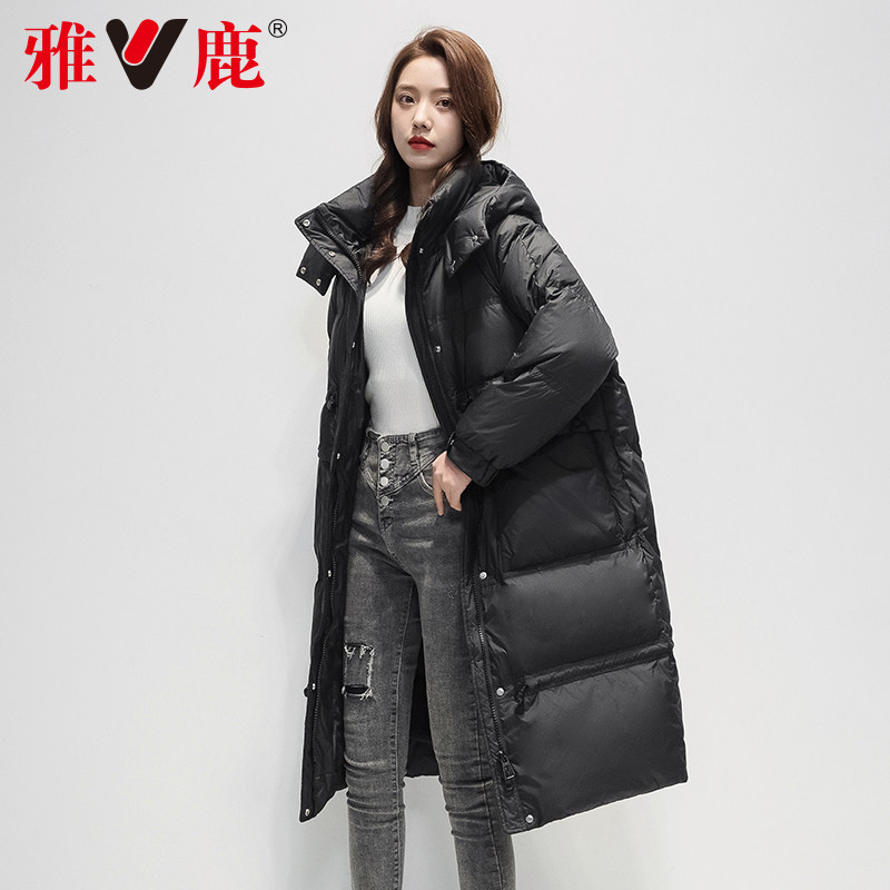 Yalu official flagship store anti-season down jacket women's winter long version thickened 2021 new over-the-knee black jacket