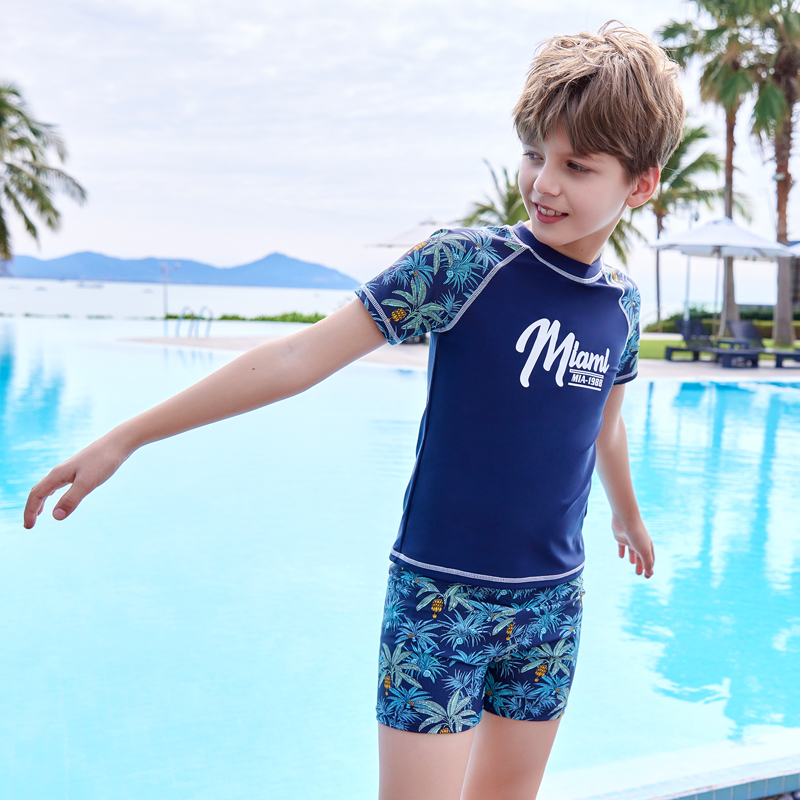 Children's swimsuit boy swimming trunks small and large children's large size Swimming swimsuit split boy swimsuit suit short sleeve sunscreen